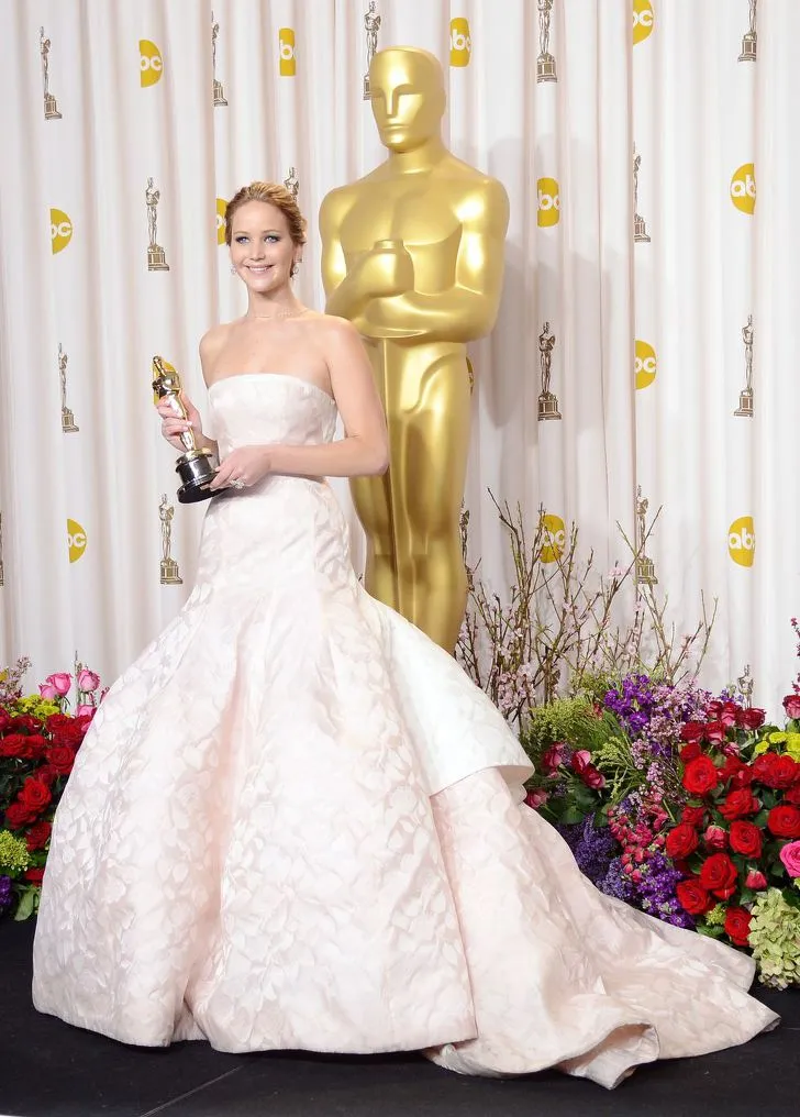 2013년 <실버라이닝 플레이북>으로 여우주연상을 받은 제니퍼 로렌스는 단연 드레스도 여우주연상 다운 것을 입었습니다. 이날 여우주연상을 받으러 무대에 올라가다 발이 걸려 넘어지며 더욱 주목을 받기도 하였습니다. 디올의 오트꾸뛰르 드레스와 쇼파드 다이아몬드, 그리고 메탈릭한 로저 비비에 클러치를 든 로렌스는 행사 내내 감격의 표정을 감추지 못했습니다.