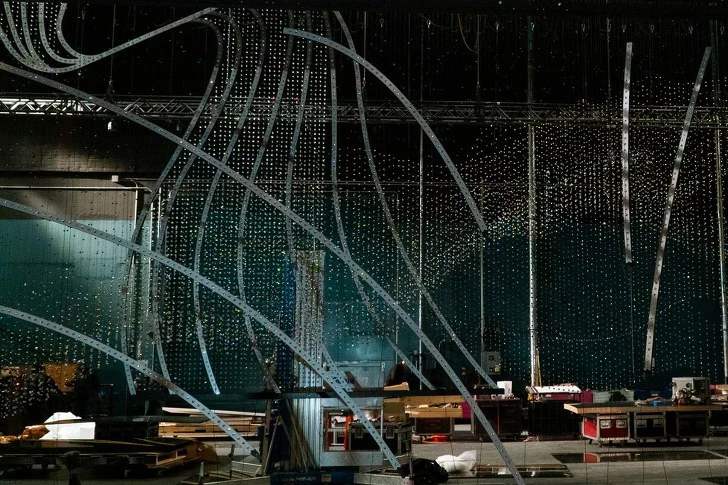 또한 무대를 감싸고 있는 리본 모양의 설치물은 '크리스털 스웨그(Crystal Swag)'라는 이름이 붙여졌습니다. 직선을 배제하고 수려한 곡선의 미를 살렸으며 비대칭의 진수를 보여주고 있다는 평가를 받고 있습니다.