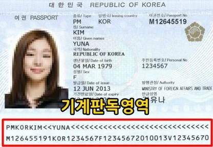 간혹 여권 사진 인증이라며 여권 번호, 생년월일, 주민등록번호 등을 가리고 사진을 찍어 웹에 올리는 사람들이 많이 있습니다. 그러나 여권 아래쪽의 기계판독영역을 드러내면 여권번호, 생년월일 등 대부분의 신원정보가 공개되는 꼴이니 조심해야 합니다.