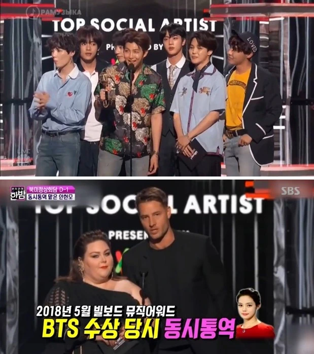 앞서 안현모는 '아메리칸 뮤직 어워드'와 '빌보드 뮤직 어워드' 통역을 맡기도 했습니다. 그는 통역 준비를 하면서 방탄소년단에 '입덕'하게 되었다고 말했습니다. 국내 연예면에는 아직 덜 알려진 어마어마한 내용들이 해외에서 벌어지고 있는 것을 알게 되면서 너무 신기하고 신세계가 열린 기분이었다는 소회를 밝혔습니다. 특히 빌보드 뮤직 어워드 통역 중 리더 RM이 '톱 소셜 아티스트 부문' 수상 당시 RM이 수상소감을 말할 때 동시통역을 잠시 멈추며 RM의 목소리를 그대로 듣도록 시청자들을 배려해 BTS 팬들의 호평을 자아냈으며 '션 멘데스'의 무대 이후 '최근 션 멘데스가 방탄소년단과 콜라보를 원한다.'는 이야기를 언급하는 등 풍부한 사전 조사로 센스 있는 진행을 했습니다.