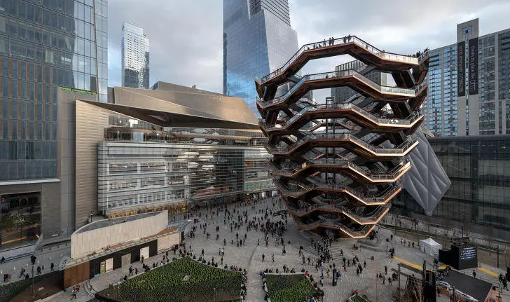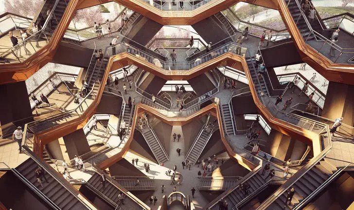 베슬은 높이가 46m에 이르며 2500개의 계단이 나선형으로 얽히고설켜 마치 벌집을 연상시키는 외관을 가지고 있습니다. 지상에서 주변의 풍경을 감상하며 계단을 빙글빙글 돌아 올라가야 하며 사방에서 맨해튼과 허드슨강의 전경을 감상할 수 있습니다. 맨해튼에 생긴 일종의 '인공산'인 셈입니다.