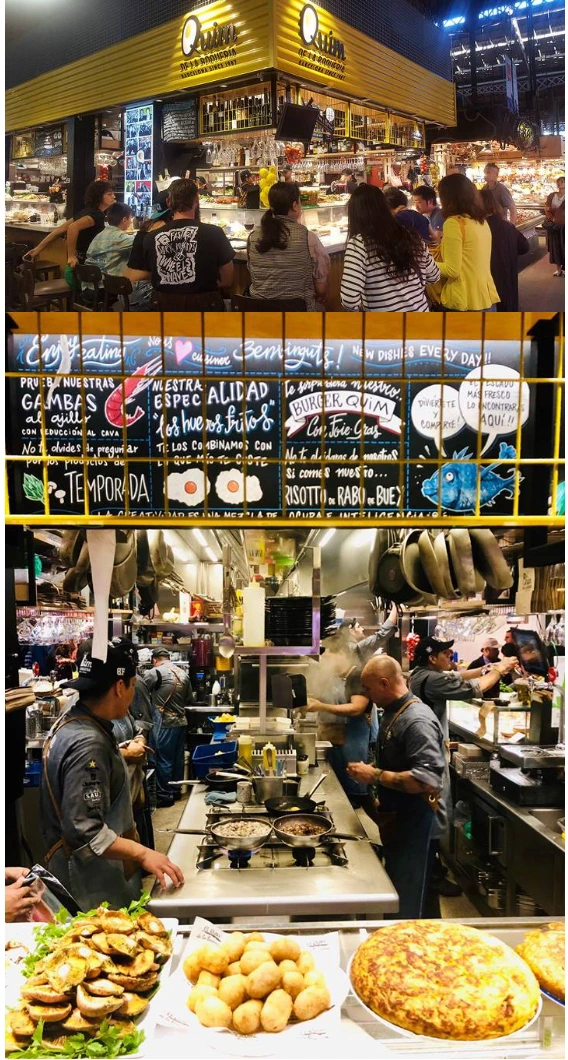 9시쯤 보케리아를 방문하여 아침식사를 할 것을 추천합니다. 바르셀로나 유명 식당의 셰프들은 아침마다 보케리아 시장에서 그날 쓸 식재료를 준비하는데, 이 셰프들이 아침식사를 하는 곳이 이 시장 안에 있습니다. 582번에 위치한 "El Quim"이라는 식당입니다. 이 식당의 주인인 Quim은 스스로를 "계란 수호자"라고 부를만큼 계란 요리가 유명합니다. 특히 "후에보스 로토스(huevos rotos)"는 이 곳의 베스트 셀링 메뉴입니다.