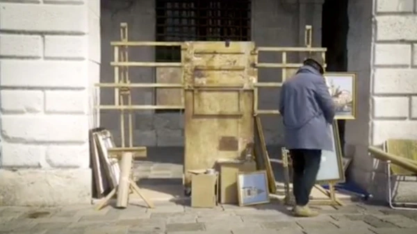비엔날레의 열기로 후끈하던 어느 날, 베네치아 비엔날레 행사장의 밖에 한 노점상이 설치되었습니다. 이곳에서는 크고 작은 그림을 이어 붙여 전시하고 있었습니다. 이 그림을 멀리서 보면 커다란 유람선이 그려져 있었고, 가까이서 더 자세히 보았더니 베네치아의 상징이 곤돌라가 초라하게 그 앞을 떠다니고 있었습니다. 이 그림의 아래에는 "Venice in Oil'이라는 글자가 적혀 있었네요. '유화로 그린 베네치아' 혹은 '기름 속의 베네치아' 등의 의미로 해석될 수 있는 그 그림은 베네치아를 거대하게 차지하고 있는 크루즈선, 그리고 나아가 베네치아의 오버투어리즘을 비판한 것이었습니다. 이 노점상은 허가받지 못했기에 곧 경찰에 의해 제지당했으며 쫓겨나게 되었습니다.