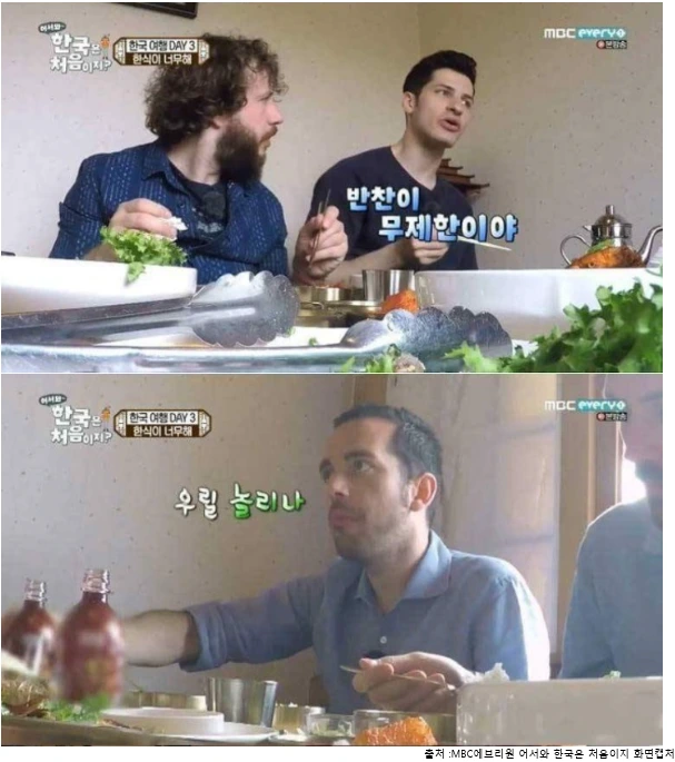 한국 식당에서는 음식을 주문하면 자연스럽게 다양한 반찬들이 나옵니다. 하지만 외국에서는 주 요리(메인 디쉬)와 부 요리(사이드 디쉬)를 돈을 주고 주문하기 때문에 한식당에서 공짜로 나오는 반찬에 놀라게 됩니다. 또한 다 먹은 반찬들을 종종 리필 해주는 것, 무료로 물이 제공되는 것 역시 우리에게는 당연하지만 한국을 처음 방문한 외국인들은 놀라워합니다.