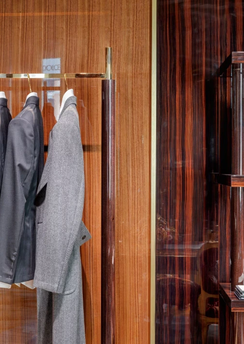 남성복이 있는 공간입니다. 이곳에는 3톤에 이르는 나무로 장식되어 있으며 특히 호두나무, 다크 에보니가 사용되었으며 반짝반짝 빛나는 황동색의 놋쇠가 나무 사이에서 존재감을 뽐내고 있습니다.