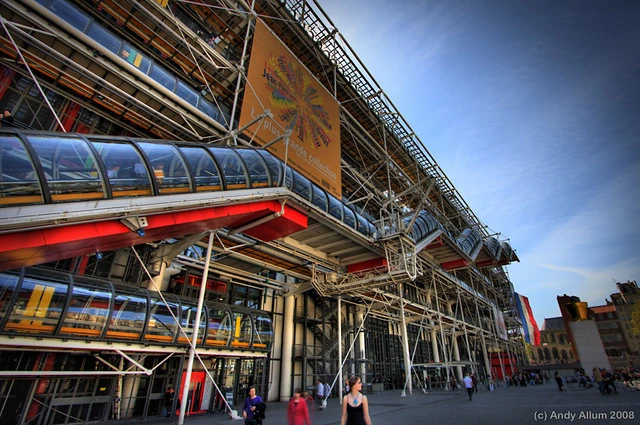 유럽 최고의 현대미술 복합공간인 퐁피두센터는 세계적인 건축가 렌조 피아노가 설계한 것입니다. 이 건물의 특이한 점은 배수관, 가스관, 통풍구 등이 밖으로 노출되어 있다는 것인데요. 철골 구조가 다 드러나있어 이 건물을 처음 보는 사람들은 아직 공사가 끝나지 않은 것이 아니냐는 의심을 가지기도 합니다. 거리에 면한 계단도 철골 구조가 그대로 드러나있는데요. 계단형으로 점점 올라가는 모습이 매우 독특합니다.