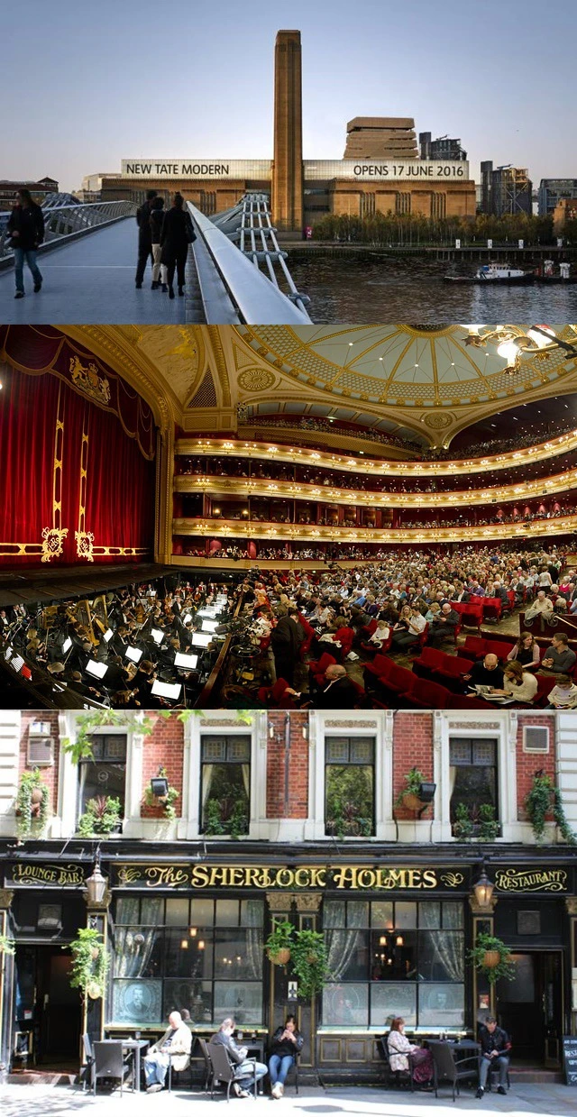 역사, 예술, 패션, 그리고 맥주까지 어느 것 하나 빠지는 것이 없는 도시, 런던입니다. 예술이나 문화를 좋아하는 사람들은 테이트 모던이나 로열 오페라 하우스를 꼭 방문해야 하며, 패션에 관심이 있다면 옥스퍼드 스트리트를 가보아야겠죠. 런던의 음식이 맛이 없다는 것은 편견입니다. 여유롭게 애프터눈티를 즐길 수도 있고 맛있는 피시앤칩스를 먹어볼 수도 있습니다. 셜록 홈즈를 보신 분들이라면 셜록 홈즈 박물관에도 가보세요.