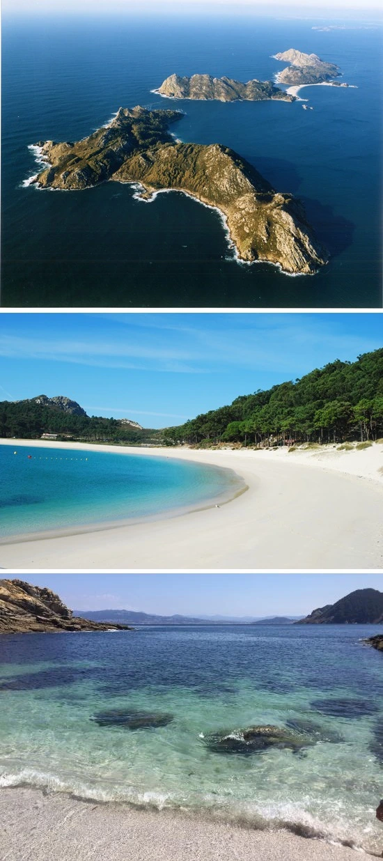 스페인의 시에스섬에서는 놀랍게도 차와 호텔이 없습니다. 이뿐만이 아니라 관광객 수를 엄격히 제한하고 있어 인적이 드물(?) 정도입니다. 이곳의 바다는 수정처럼 맑으며 해변에는 나무가 줄지어 있고 바다와 멀지 않은 곳에 아름다운 산이 있으며 해변의 모래는 새하얀 것이 특징입니다.