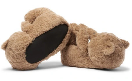 언뜻 보면 테디 베어 인형인 것 처럼 보이는 이 폭신폭신한 곰돌이. 사실 이 곰돌이는 슬리퍼입니다. 보통 동물 슬리퍼는 동물의 얼굴이 앞을 향하는데 반해, 이 동물 슬리퍼는 착용하는 사람을 쳐다보고 있는 것이 특징입니다.