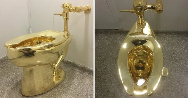 당연히 그냥 변기는 아니겠죠. 바로 18캐럿 금으로 만든 변기였습니다. 이 작품은 미국의 경제 불균형과 부의 세습에 영감을 받아 만들어졌다고 하네요.