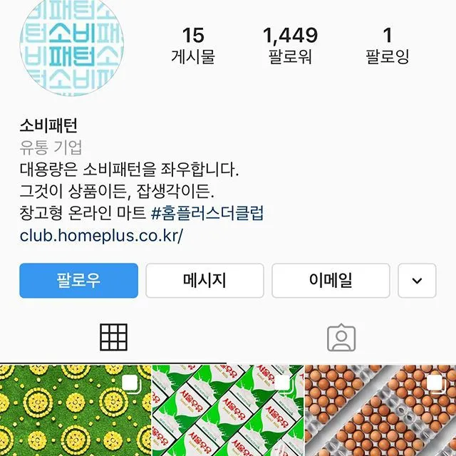 얼마 전 홈플러스에서는 창고형 점포의 온라인 버전인 '더 클럽'을 론칭했습니다. 온라인에서 물건을 주문하는 방식이니만큼 SNS를 통한 마케팅은 어느 정도 예상이 되었던 상황이었습니다. 물론 인스타그램의 계정도 생겼죠.