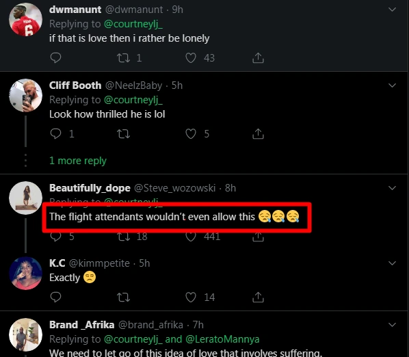 트위터 계정 @courtneylj_에는 하나의 사진이 올라왔는데요. 바로 기내에서 한 남성이 서있는 사진이었습니다. 이 남성은 복도에 서 있었고, 좌석에는 한 사람이 세 칸의 좌석을 차지하고 누워있었는데요. 누워있는 사람을 지긋이 바라보고 있었습니다.