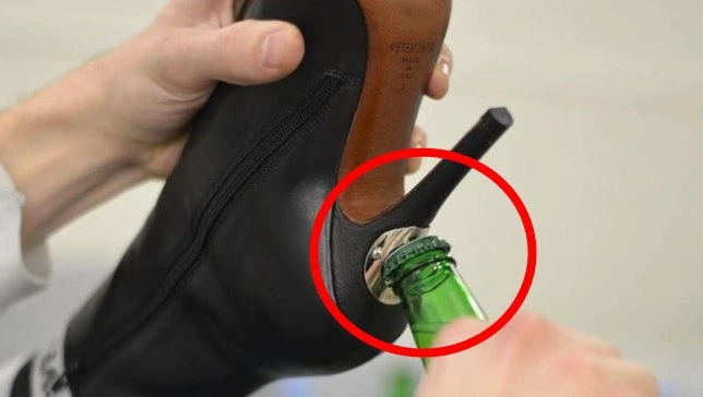 바로 구두의 굽에 반짝이는 금속 때문이었습니다. 이것의 정체는 바로 병따개인데요. 파티 피플을 위해 병따개가 '빌트인'으로 설치되어 있네요.