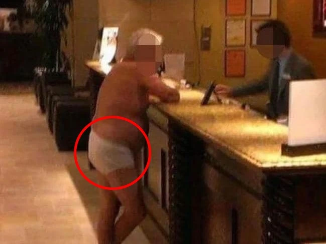 페이스북 그룹인 Travel Gumps 101에는 보고도 믿지 못할 사진이 올라왔습니다. 바로 팬티만 입은 남자가 호텔의 카운터에 서 있는 모습이었습니다. 신발도, 상의도, 하의도 입지 않은 그의 모습에 네티즌들은 경악할 수밖에 없었습니다.