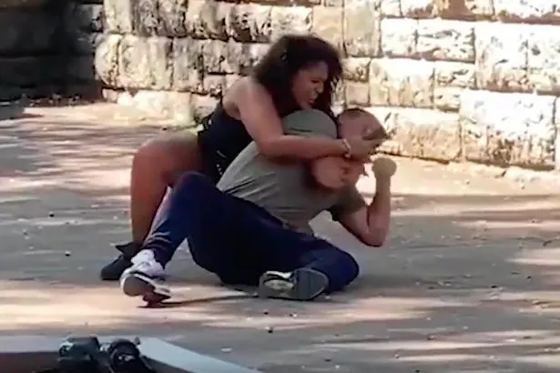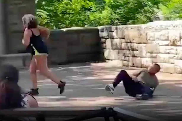 그는 결국 땅바닥에 넘어졌고 여성에게 제압당하고 말았는데요. 끝까지 자신의 얼굴을 손으로 감싸 쥐다가 결국 이 여성이 무언가를 얻었다는 듯 도망가고 있습니다.