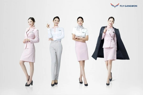 10월 10일 플라이강원에서는 자사의 공식 인스타그램 계정을 통해 유니폼을 발표했습니다. 화사한 연핑크 색상과 회색의 조합이 매우 화사하면서도 세련된 느낌입니다. 사실 항공 업계에서 분홍색 유니폼을 사용하는 경우는 흔치 않은데요. 특히 진한 핫핑크 색상이나 자주색 등은 간혹 사용하는 항공사도 있지만 연한 분홍색은 잘 눈에 띄지 않는 것은 사실이죠. 의외의 결정이지만 세련된 느낌을 자아냅니다.