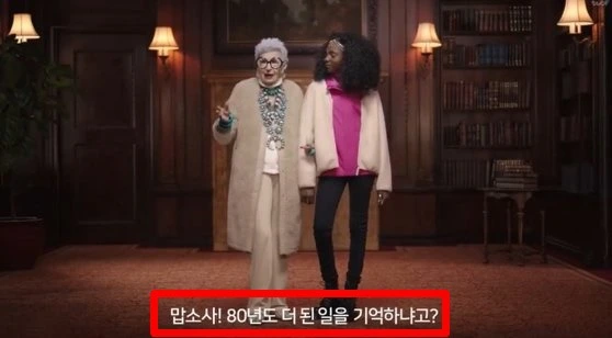 이어서 이 소녀는 할머니에게 '제 나이 때는 어떻게 입으셨어요?'라고 질문했고, 할머니는 황당하다는 듯이 '맙소사! 80년도 더 된 일을 기억하냐고?'라고 대답합니다. 이 장면의 위로 LOVE&FLEECE라는 자막이 나오며 광고는 마무리되죠.