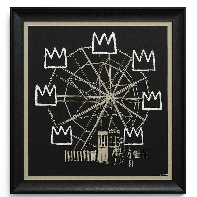 그래피티의 선구자 장 미셸 바스키아에게 경의를 표하기 위해 만들어진 인쇄물입니다. 최근 바스키아의 이미지가 무자비하게 상품화되고 있는 것에 의문을 제기하기 위해 자신도 바스키아의 이미지를 상품화했다는 다소 모호한 상세 설명을 덧붙였습니다.