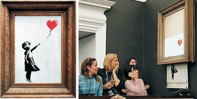 뱅크시(Banksy)를 아시나요? 작년 소더비 경매장에 그의 그림 '소녀와 풍선'이 올라왔었고, 무려 15억 원에 낙찰되었습니다. 그러나 이 그림이 낙찰되자마자 액자 속에 미리 설치되어 있었던 파쇄기가 저절로 작동하며 그림은 잘게 찢어지고 맙니다. 뱅크시는 한순간에 휴지조각이 되어버린 15억 원짜리 그림으로 인해 더욱 유명세를 얻은 아티스트입니다.