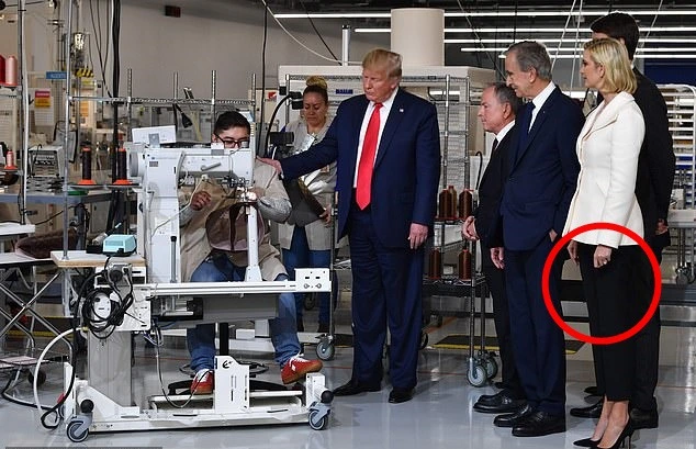 이방카 트럼프는 이때 자신의 실수를 깨달은 것 같습니다. 이들이 루이비통 공장 현장에 들어섰을 때는 더 이상 샤넬 가방을 들고 있지 않았기 때문입니다.