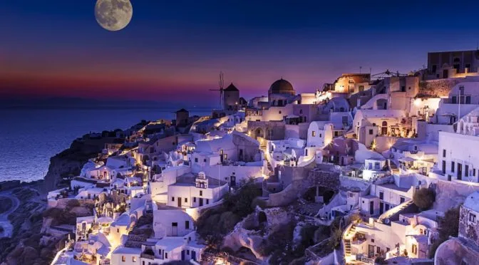마치 하얀 각설탕같이 생긴 집들이 있는 산토리니는 세계 3대 선셋 중의 하나로 해가 질 때 매우 아름답습니다. 그러나 해가 완전히 지고 달이 뜰 때도 못지 않은 아름다움을 뽐내고 있죠. 낮과는 또 다른 분위기를 자아내는 곳입니다. 산토리니의 야경을 가장 잘 즐길 수 있는 곳은 오이아 마을인데요. 이 마을의 바에 들어가 야경을 감상하며 칵테일을 한 잔 즐겨보는 것은 어떨까요?