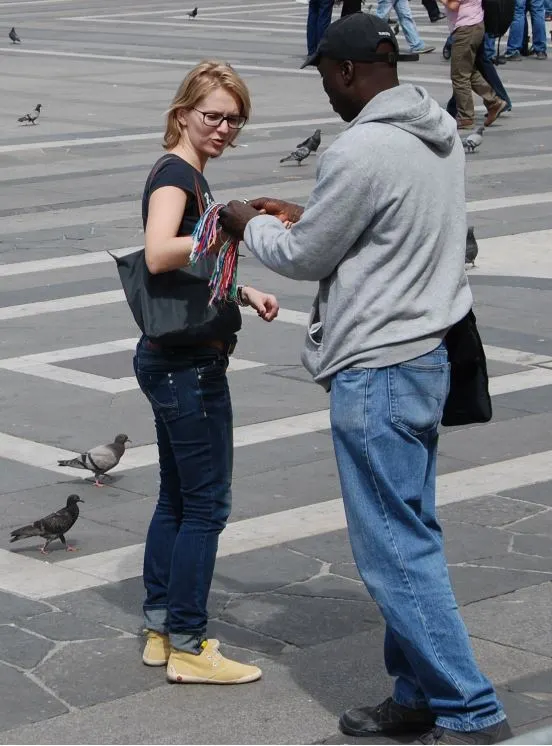 소매치기들은 무리 지어 행동합니다. '덜 위험해 보이는' 사람들도 소매치기일 수 있으며 심지어 아기를 안고 있는 경우도 있습니다. 누군가가 당신에게 친절하게 대하거나 주의를 산만하게 한다면 일단 의심하세요. 가위 등의 도구를 사용해 가방을 자르는 경우도 있습니다.