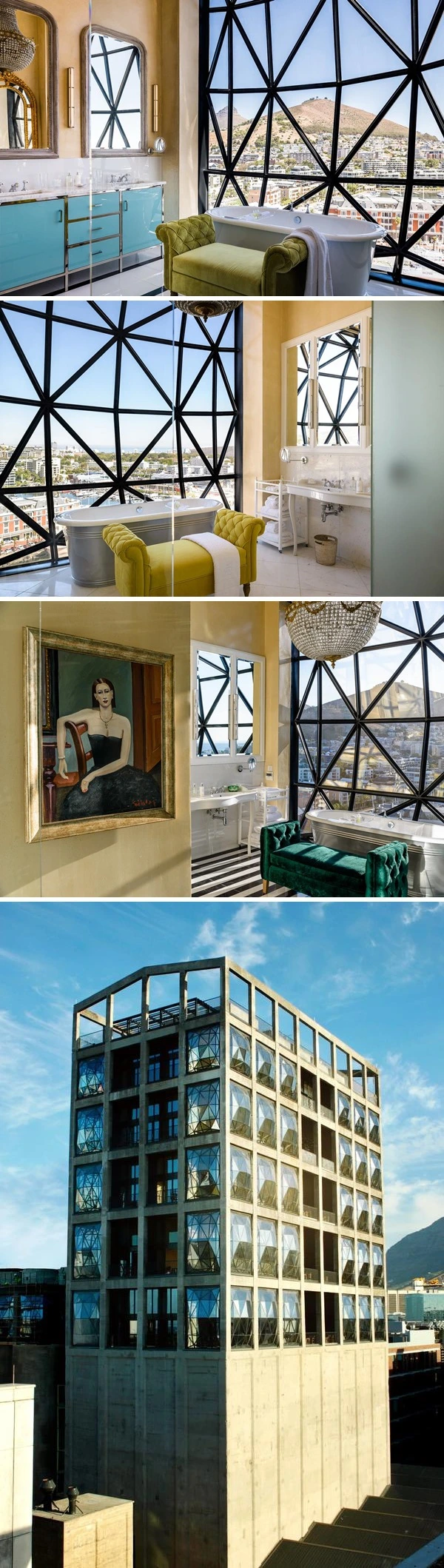 실로 호텔의 욕실은 빅토리아풍으로 꾸며져 있으며 컬러 유리와 크롬을 이용해 만들어진 창문을 통해 도시의 전경을 감상할 수 있습니다.