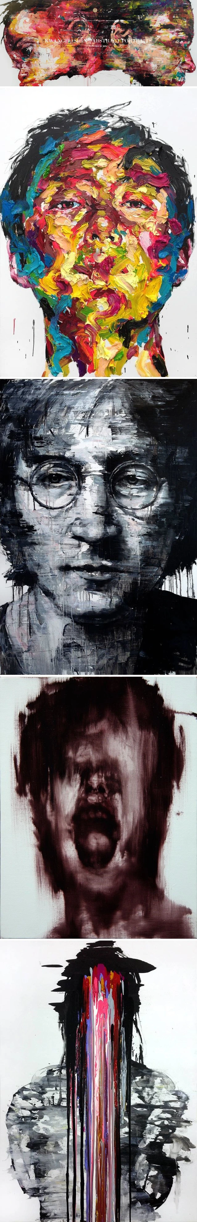 이 작가는 특별한 방식으로 초상화를 그립니다. 사람의 형체인 것 같으나 얼굴, 혹은 몸의 경계들이 물감에 의해 흩어지고 뭉개지며 폭발합니다. 이 작가는 인터뷰를 통해 종이컵에 물을 담아 마시듯 사물의 쓰임은 정확하나 사람은 그렇지 않다고 말하며 한 단어로는 사람을 나타낼 수 없으며 인간이 가진 애매함의 속성을 표현하는 것이 좋아 계속 이런 형태의 추상화를 그린다고 말했습니다. 그의 초상화에는 복잡한 인간의 감정과 에너지가 담겨있으며 왜곡과 과장을 통해 인간의 내면을 외부세계로 가져왔다는 평가를 받습니다.