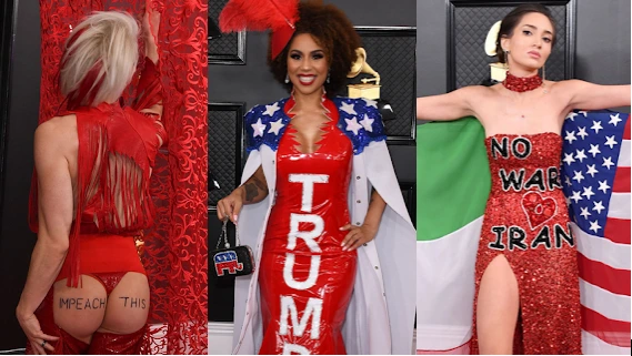 가수 리키 레벨 또한 기묘한 의상으로 주목 받았습니다. 앞모습은 다소 평범해 보이는 것 같은데요. (물론 매우 평범하지는 않습니다.) 뒷모습이 화제가 되었죠. 그는 엉덩이가 훤히 드러나는 의상을 입었는데요. 이곳에 '이거나 탄핵해 보시지(IMPEACH THIS)'라는 글씨를 써둔 것이었죠. 이 문구는 대통력 탄핵안을 발의하고 하원에서 통과시킨 민주당 세력을 비꼬려는 의도인 것 같네요. 그가 의상으로 정치적 메시지를 전한 것은 이번이 처음이 아닙니다. 지난해 그래미상 시상식에도 '트럼프 지지' 의상을 입고 나온 전력이 있죠.
