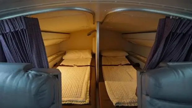 이 승무원이 소개한 공간은 보잉777 기종에 있는 공간이었는데요. 이코노미석의 바로 위에 있는 곳이라고 합니다. 이곳은 성인들이 서서 걸을 수 없는 높이로 되어있고, 한 명만 걸을 수 있는 아주 작은 복도를 가운데 두고 양옆으로 침대가 놓여 있죠. 물론 모든 침대에는 칸막이가 있어 개인 공간에서 휴식을 취할 수 있습니다.