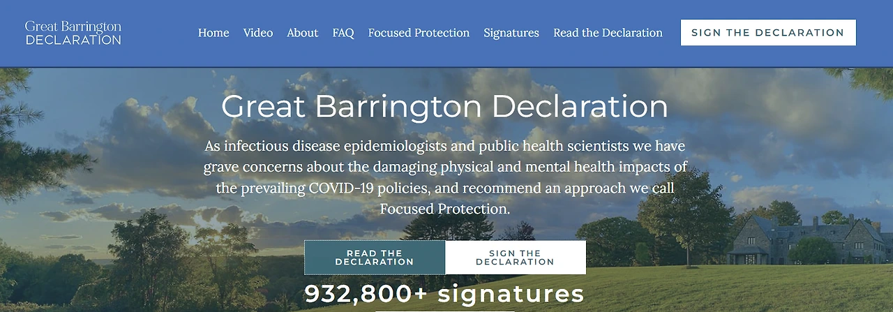 지난 주가 <그레이트 배링턴 선언문> 발표 2주년이었군요. 2020년 10월 초, 선언문에 대한 소식을 듣고 단 일초의 망설임도 없이 바로 서명한 후 이에 대한 글을 브런치에 올린 바 있습니다. 이 선언문을 작성했던 3명의 연구자는 각각 하버드, 옥스퍼드, 스탠퍼드 대학 교수였습니다. 학벌에 유독 약한 우리나라 사람들이 보면 기가 죽을 면면이었지만, 그들은 이 선언문을 작성했던 탓에 코비드 19 유행 내내 온갖 비난과 협박에 시달려야 했죠.