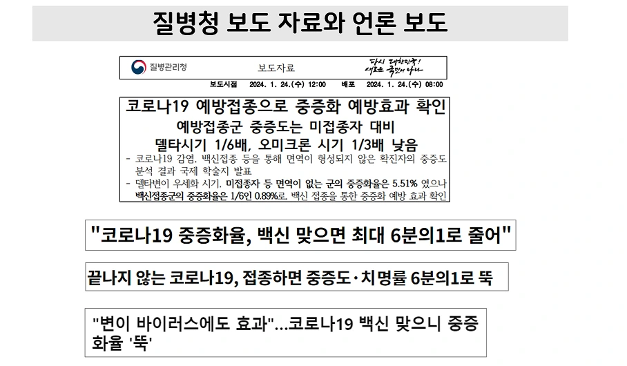 이번에는 질병청 發 보도자료를 통하여 코로나19 백신을 맞으면, 중증도가 최대 6분의 1로 낮아진다는 연구결과가 전 언론을 통하여 기사화되었더군요. 그들은 국내연구자들이 BMC Infectious Diseases에 발표한 논문을 인용하면서 다시 한번 백신접종의 중요성을 강조하고 있었습니다. 이 논문에서는 백신 접종 전 코로나19 치명률을 1.86%로 추정하고 있었습니다만, 사실 그 부분부터 오류라고 봐야 합니다. "치명률이 낮아서 실패가 아니다?"에 적었듯, 무증상과 경한 증상이 대부분이면서 사망은 주로 고령의 기저질환자에서 발생하는 감염병의 치명률이란 그야말로 코에 걸면 코걸이, 귀에 걸면 귀걸이라고 볼 수 있는 지표이기 때문입니다.