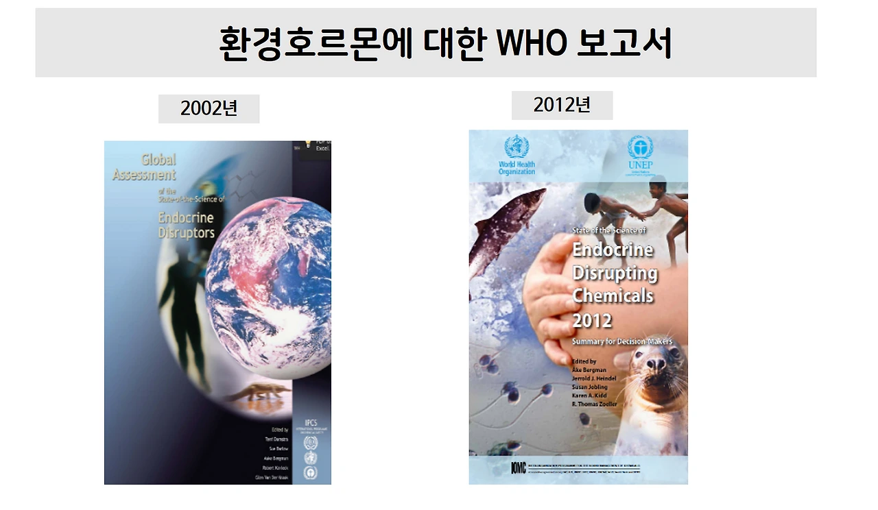 하지만 저는 이 보고서를 매우 냉소적으로 읽었습니다. 그 이유는 WHO 보고서에 인용된 논문들 대부분은 단 하나의 환경호르몬에만 초점을 맞추어 시행된 실험논문이기 때문입니다. 지구의 모든 생명체는 수백, 수천 종류의 환경호르몬 혼합체에 동시에 노출되면서 사는 존재라는 사실이 간과된 채 시행된 실험 연구 결과들은 과연 현실에서 어떤 의미가 있을까요?