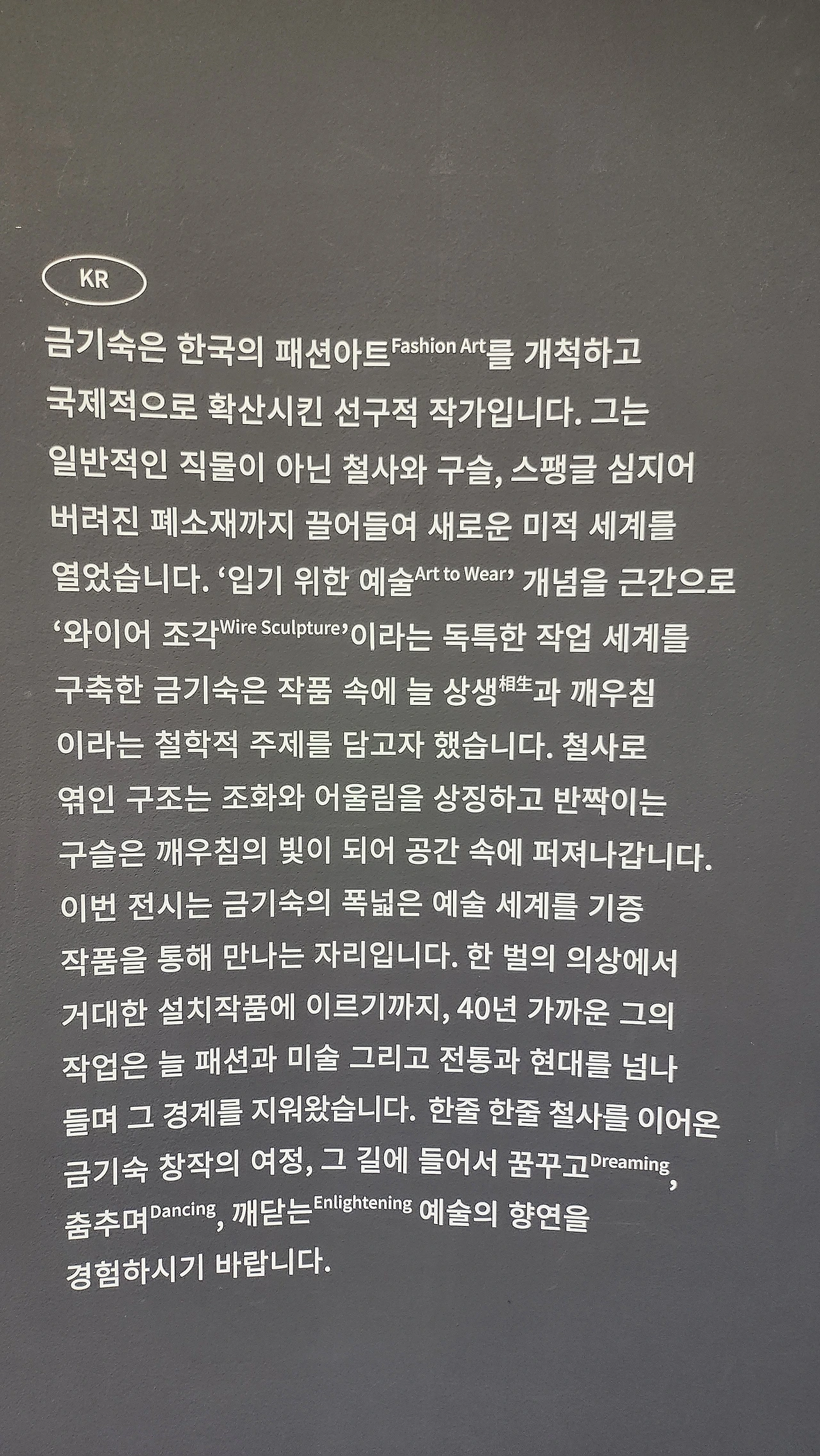 오픈할때부터 가보고 싶었던 금기숙 특별전에 다녀왔어요. 아름다움 그 자체라서 감탄사만 쏟아내다 왔네요.