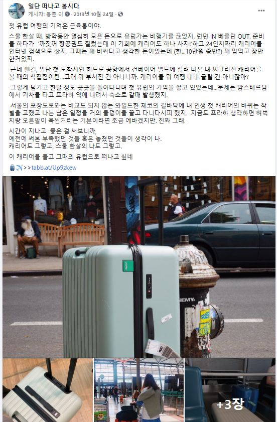 그래서 꺼내든 과거의 기억이 내가 친구들과 대학생 시절 암스테르담에서 프라하로 갔던 경험이다. 당시에 꽤 긴 여행으로 혹사당하고 있던 친구의 캐리어 바퀴가 부서지는 일이 있었다. 그걸 끌고 다니느라 친구가 꽤나 고생했던 경험이 있었는데 당시에도 돈 좀 더 주고 좋은 캐리어 살껄...하는 이야기를 했던 기억이 난다.