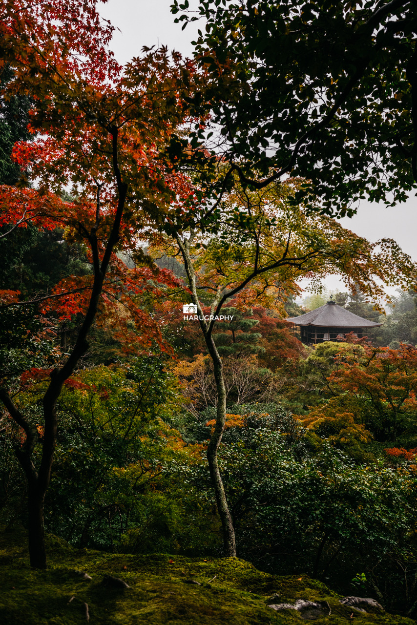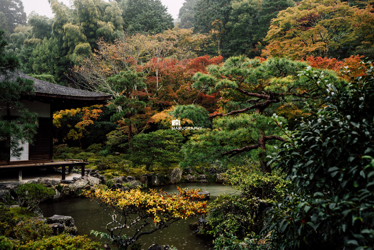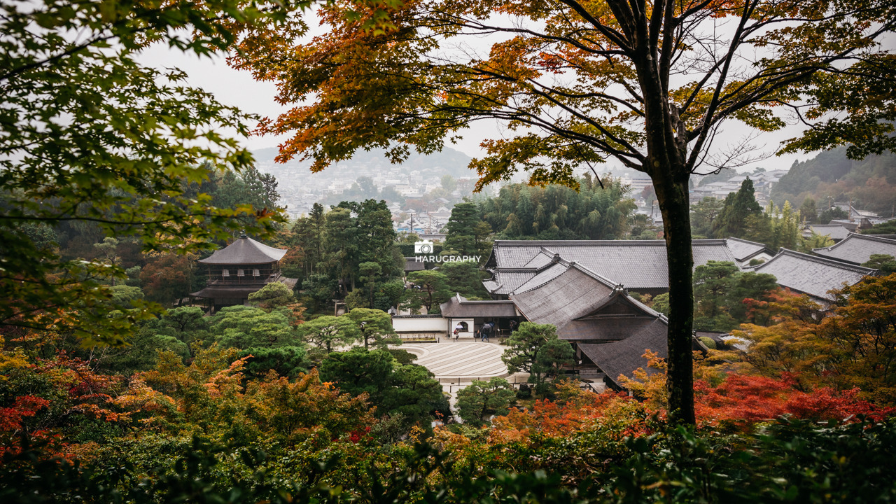 본당을 지나면 관람로를 따라 전망대로 올라가게 된다. 5분 정도 올라가다 보면 언덕의 정상에 다다르는데 이곳에서 은각사 전체를 조망할 수 있다. 일본의 전통 건축물 또한 한국과 마찬가지로 주변의 숲과 나무가 갖는 의미가 굉장히 크다는 걸 알 수 있었다. 아래에서 바라보던 사찰 내부의 모습과는 전혀 다른 느낌의 풍경을 볼 수 있었다. 여기저기 단풍이 들어 참 아름다웠다.