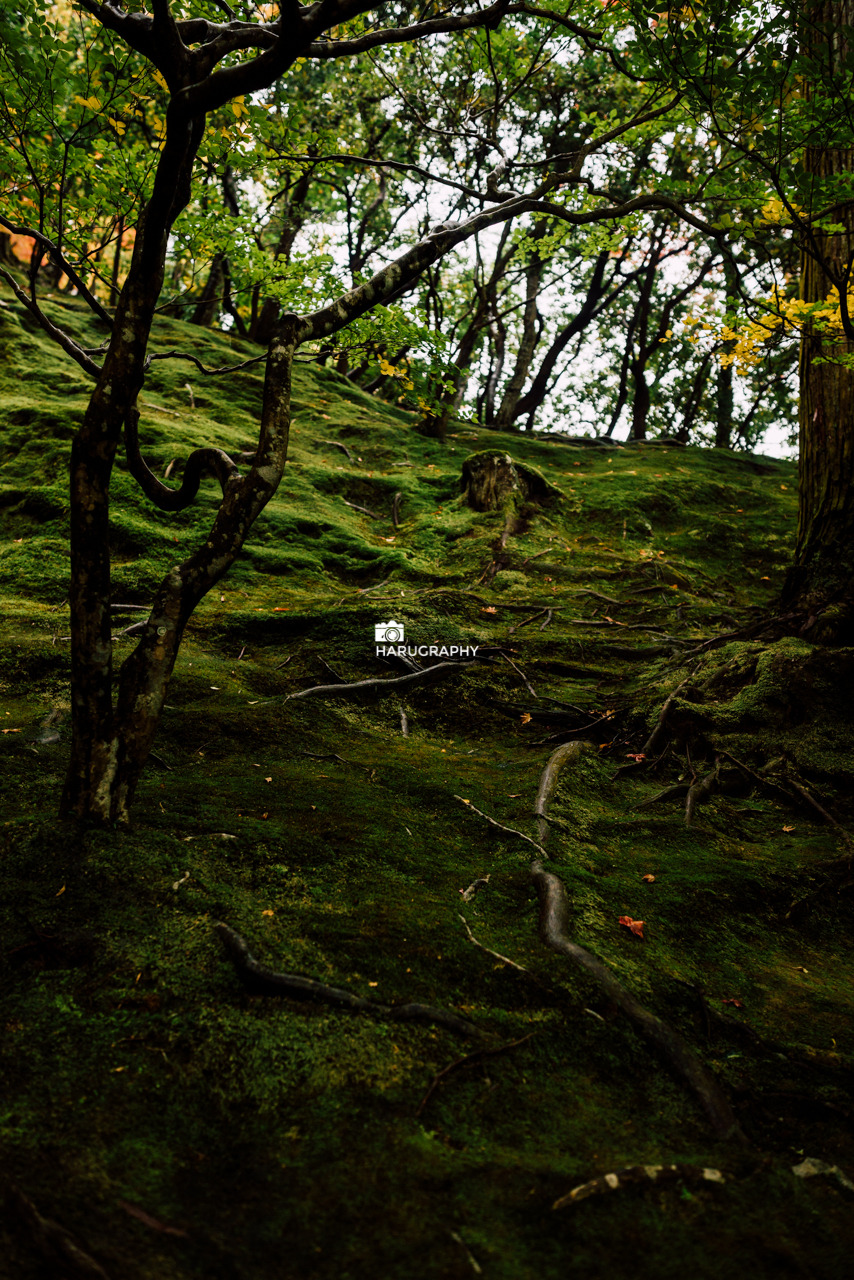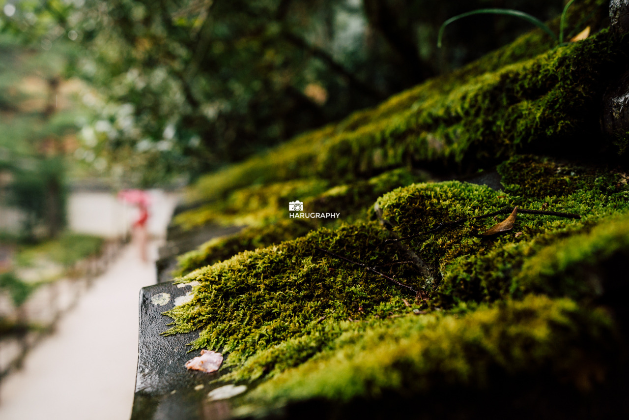 은각사를 둘러보면서 가장 부러웠던 건 다름 아닌 싱그러운 이끼였다. 담장 위 기와에서부터 정원 이곳저곳에서 쉽게 찾아볼 수 있는 잘 자란 이끼를 바라보며 부럽다는 생각에 빠졌다. 흔히 볼 수 있는 이끼가 뭐가 그리 대수냐고 할 수도 있겠지만, 그러나 내가 생각한 이끼는 생각보다 그렇게 단순하지 않았다. 누군가 이끼가 잘 자랄 수 있는 환경을 조성해주고, 생장하는 과정에서 주변 사람들이 그것을 함부로 밟거나 걷어내지 않고 옆으로 비켜서 지나가는 모습이 눈 앞에 떠올랐다. 스스로 그 자리에 있는 자연에 대한 존중을 담은 가치관. 그리고 내가 본 것을 다른 사람도 함께 볼 수 있게 해주는 타인에 대한 배려. 시간이 누적되어 만들어진 결과물에 대한 소중함을 인정하는 문화. 너무나도 많은 것들이 떠올랐다. 10년 전 일본에 왔을 때는 한국도 마음만 먹으면 이렇게 할 수 있다고 스스로를 위로했지만 이번에는 어쩌면 우리가 안 하는 게 아니라 못하는 게 아닐까 하는 생각이 들어 조금 씁쓸했다.