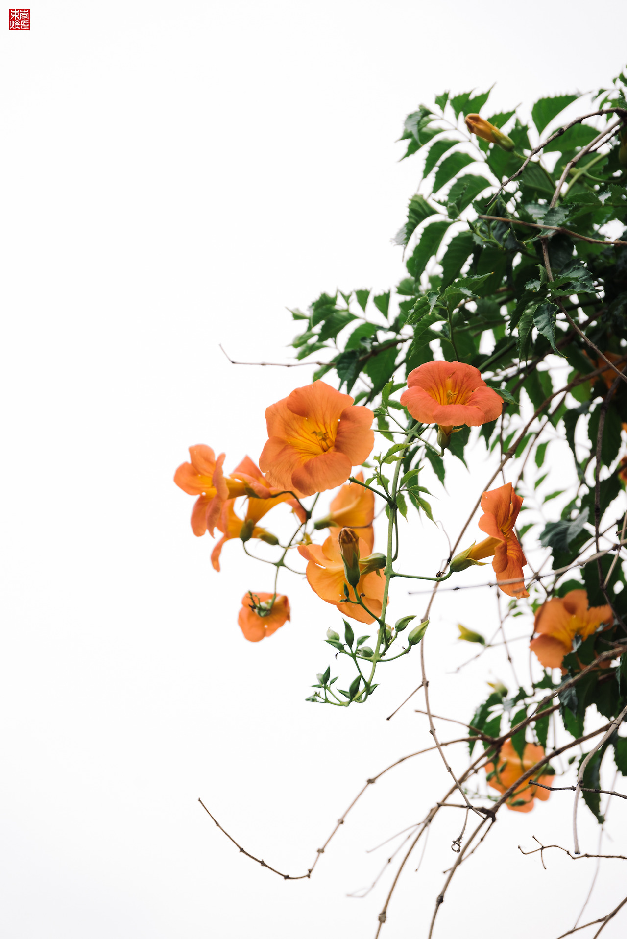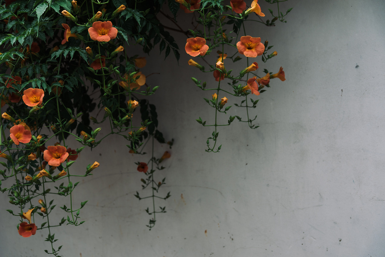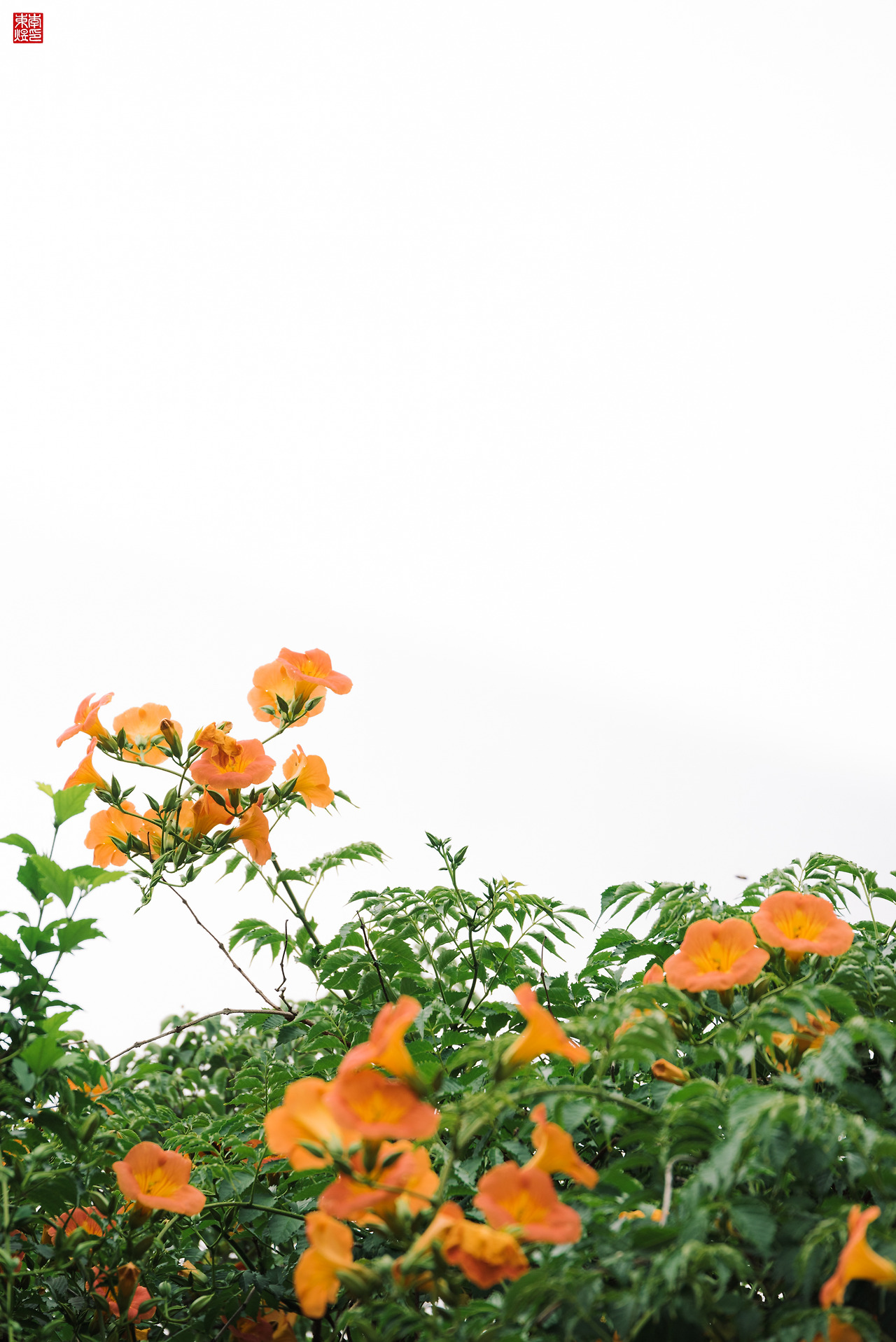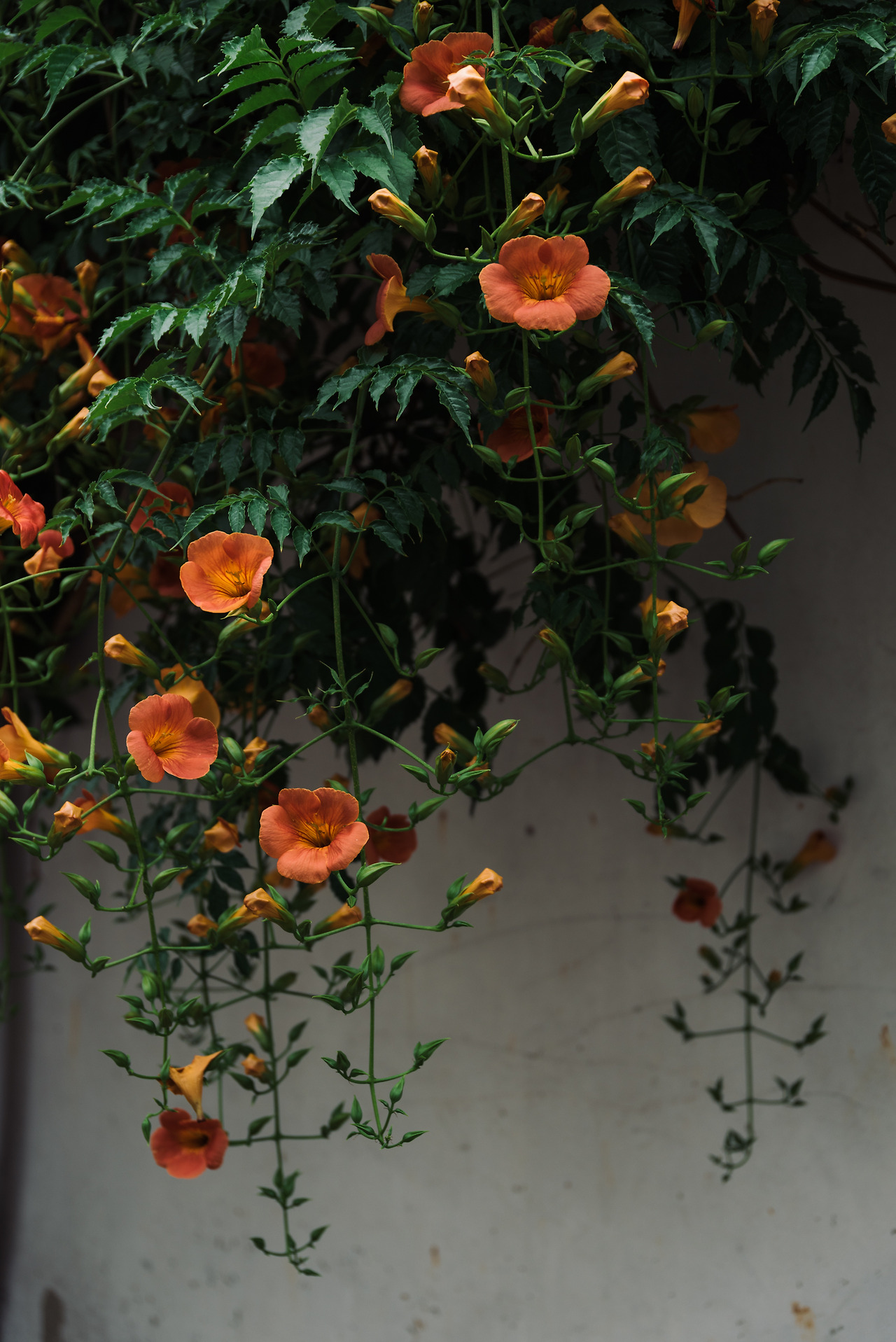 삼청동에 도착하니 잔뜩 찌푸린 하늘에 구름이 흘러가고 있었다. 빛이 부드러워서 편하게 사진을 찍기에 좋았다. 마치 하늘에 있는 거대한 소프트박스를 활용해서 사진을 찍는 기분이랄까. 배경이 깔끔하게 정리되니 능소화의 색과 모양에 더욱 집중할 수 있었다. 윤보선가와 그곳에서 조금 더 걸어가면 나오는 유명한 떡볶이집 앞에 능소화가 활짝 피어 있어서 두 곳을 오가며 즐겁게 촬영했다. 떡볶이집 앞에서 사진을 찍을 때는 예쁜 고양이 한 마리가 프레임 안에 들어오는 행운도 있었다.