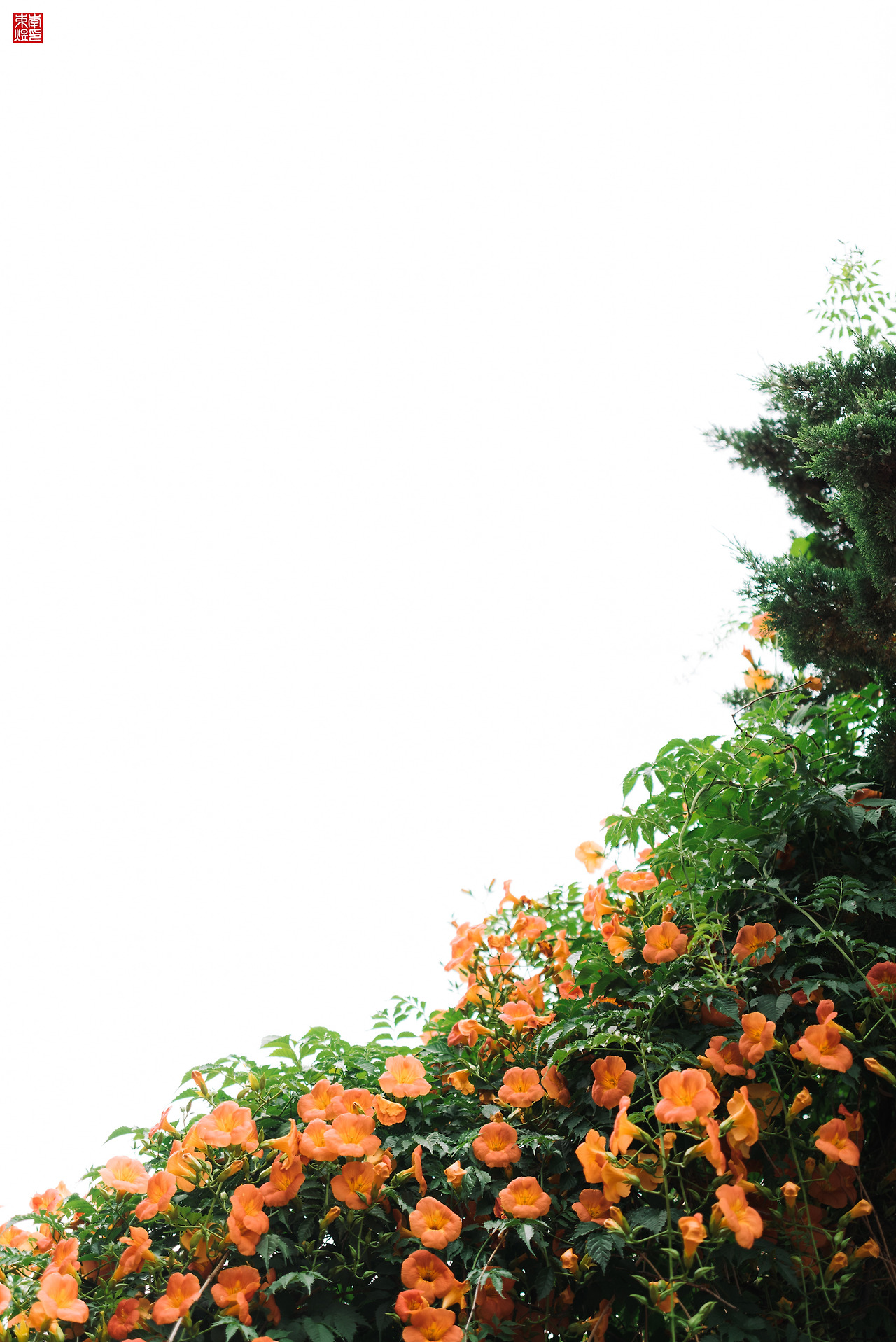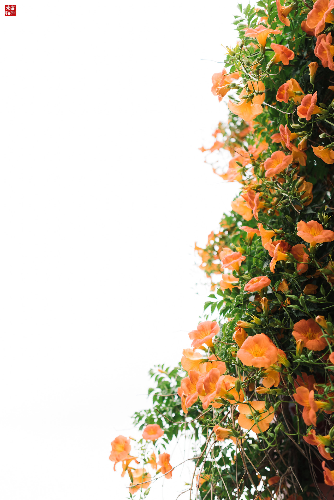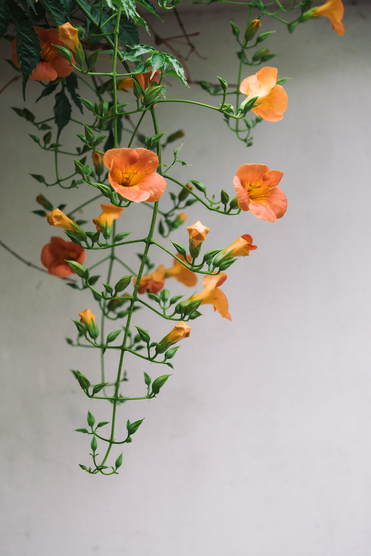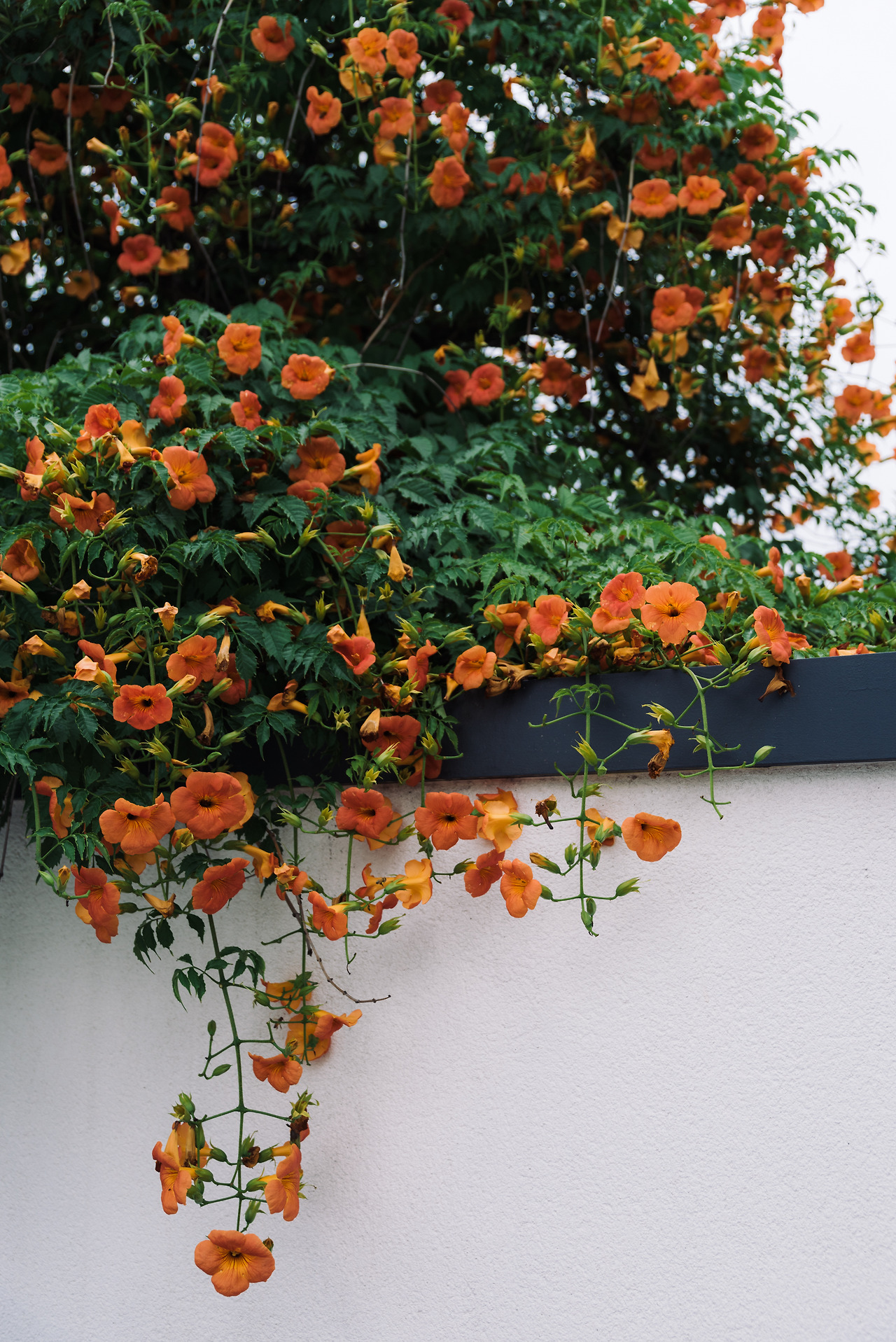 삼청동에 도착하니 잔뜩 찌푸린 하늘에 구름이 흘러가고 있었다. 빛이 부드러워서 편하게 사진을 찍기에 좋았다. 마치 하늘에 있는 거대한 소프트박스를 활용해서 사진을 찍는 기분이랄까. 배경이 깔끔하게 정리되니 능소화의 색과 모양에 더욱 집중할 수 있었다. 윤보선가와 그곳에서 조금 더 걸어가면 나오는 유명한 떡볶이집 앞에 능소화가 활짝 피어 있어서 두 곳을 오가며 즐겁게 촬영했다. 떡볶이집 앞에서 사진을 찍을 때는 예쁜 고양이 한 마리가 프레임 안에 들어오는 행운도 있었다.