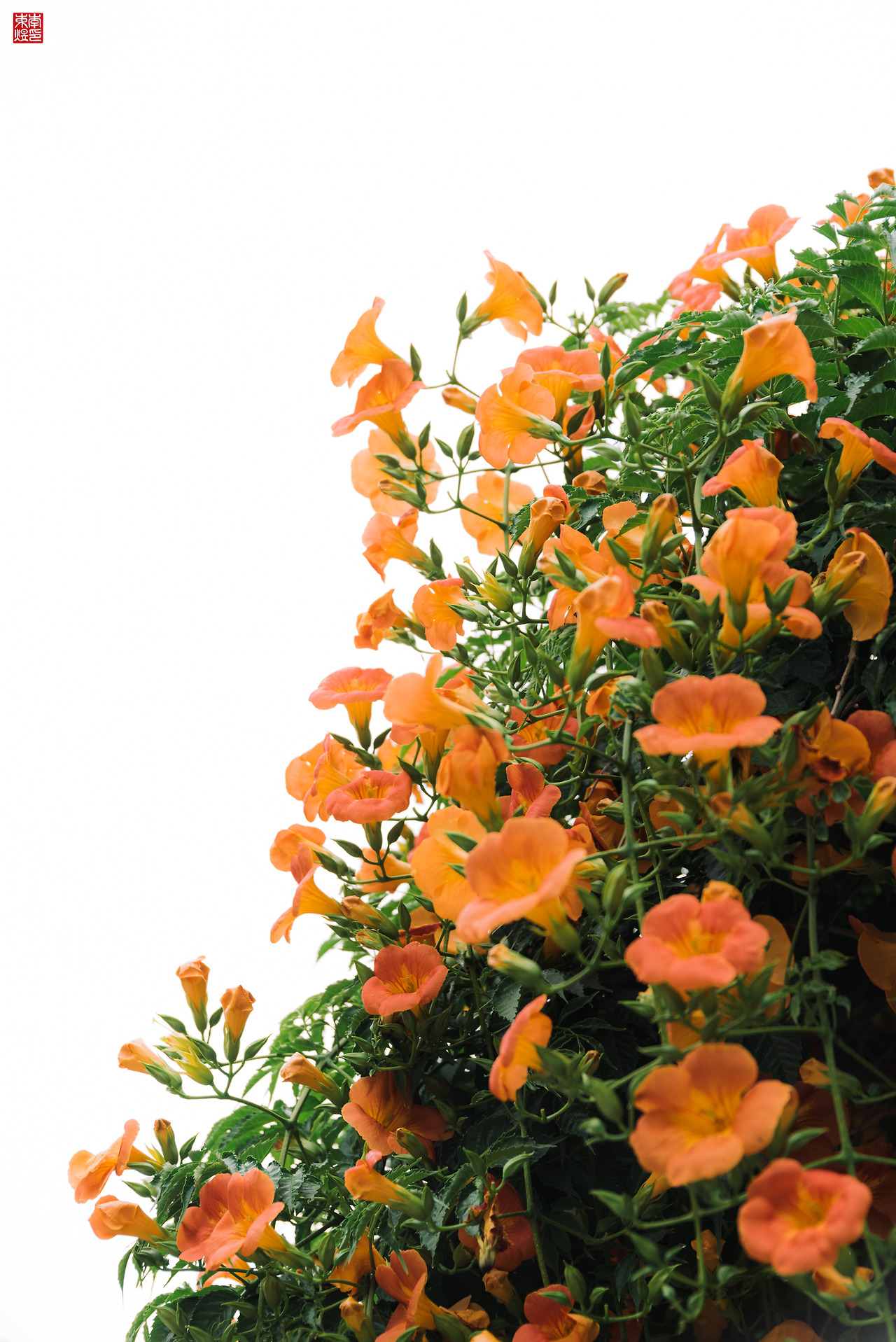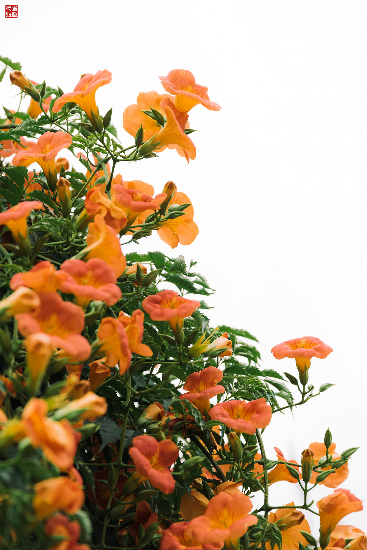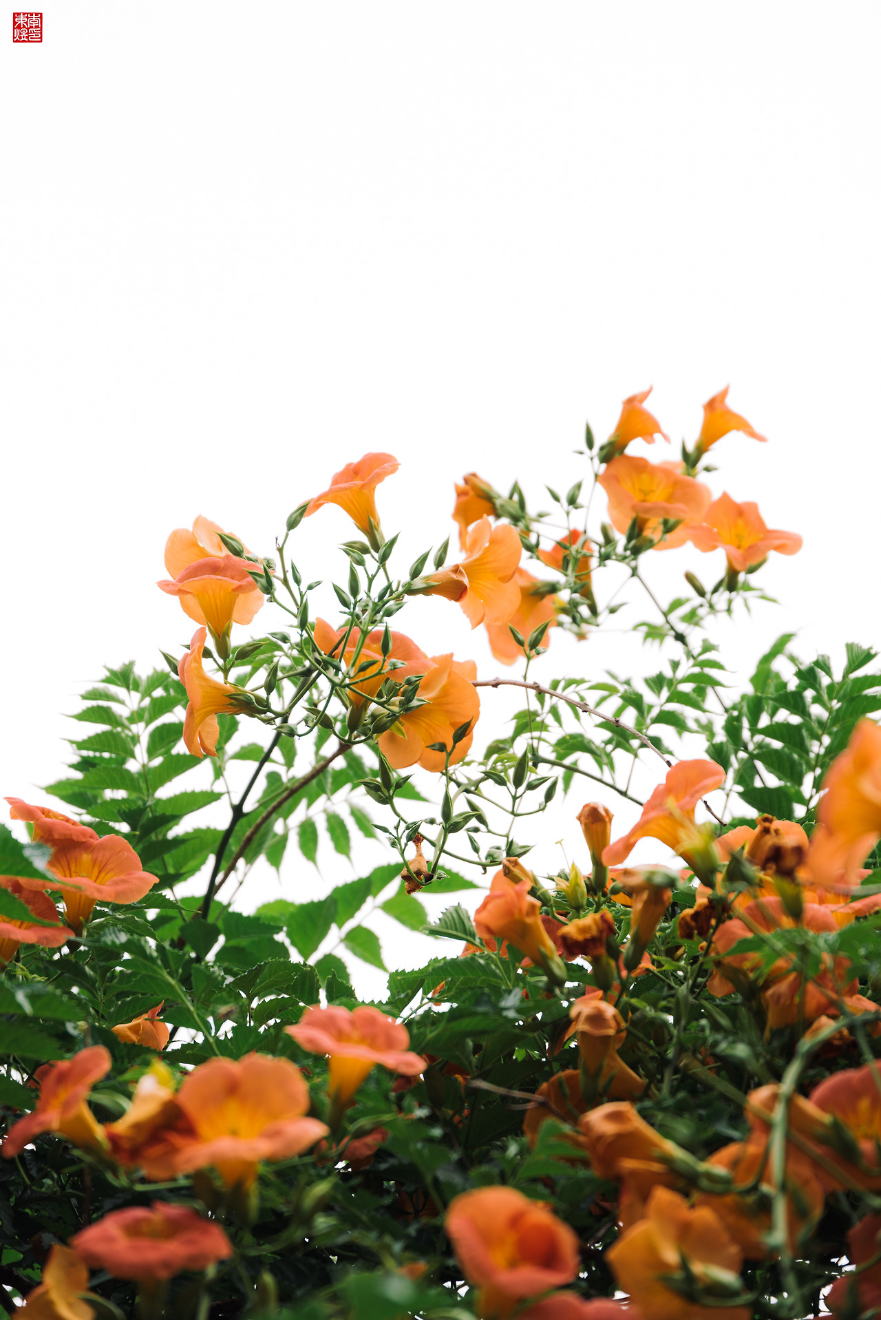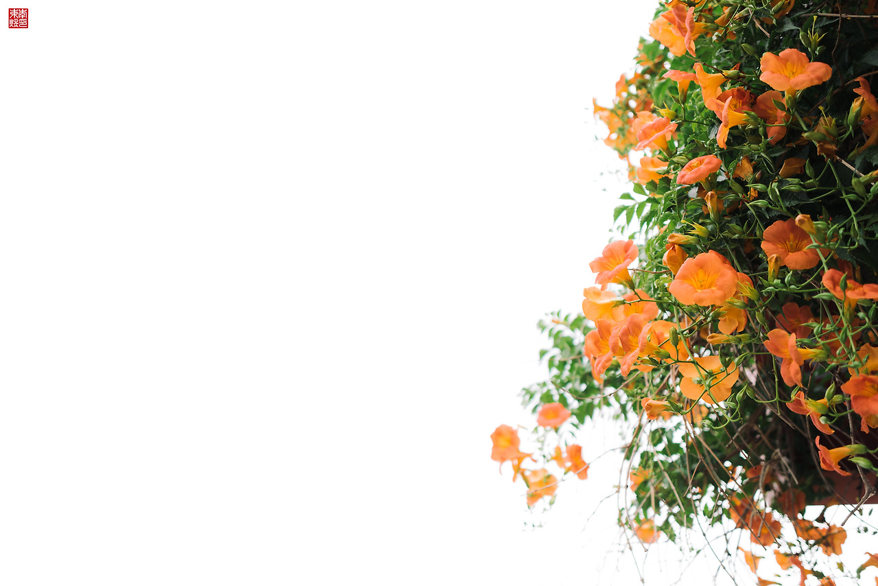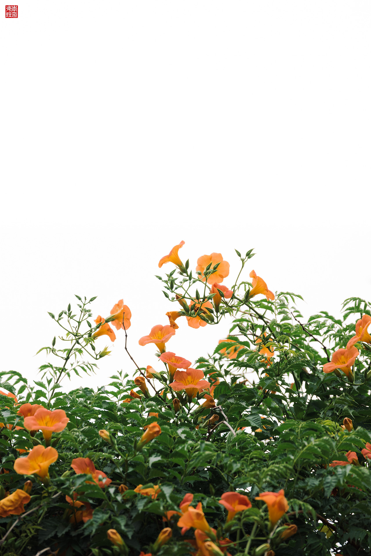 삼청동에 도착하니 잔뜩 찌푸린 하늘에 구름이 흘러가고 있었다. 빛이 부드러워서 편하게 사진을 찍기에 좋았다. 마치 하늘에 있는 거대한 소프트박스를 활용해서 사진을 찍는 기분이랄까. 배경이 깔끔하게 정리되니 능소화의 색과 모양에 더욱 집중할 수 있었다. 윤보선가와 그곳에서 조금 더 걸어가면 나오는 유명한 떡볶이집 앞에 능소화가 활짝 피어 있어서 두 곳을 오가며 즐겁게 촬영했다. 떡볶이집 앞에서 사진을 찍을 때는 예쁜 고양이 한 마리가 프레임 안에 들어오는 행운도 있었다.