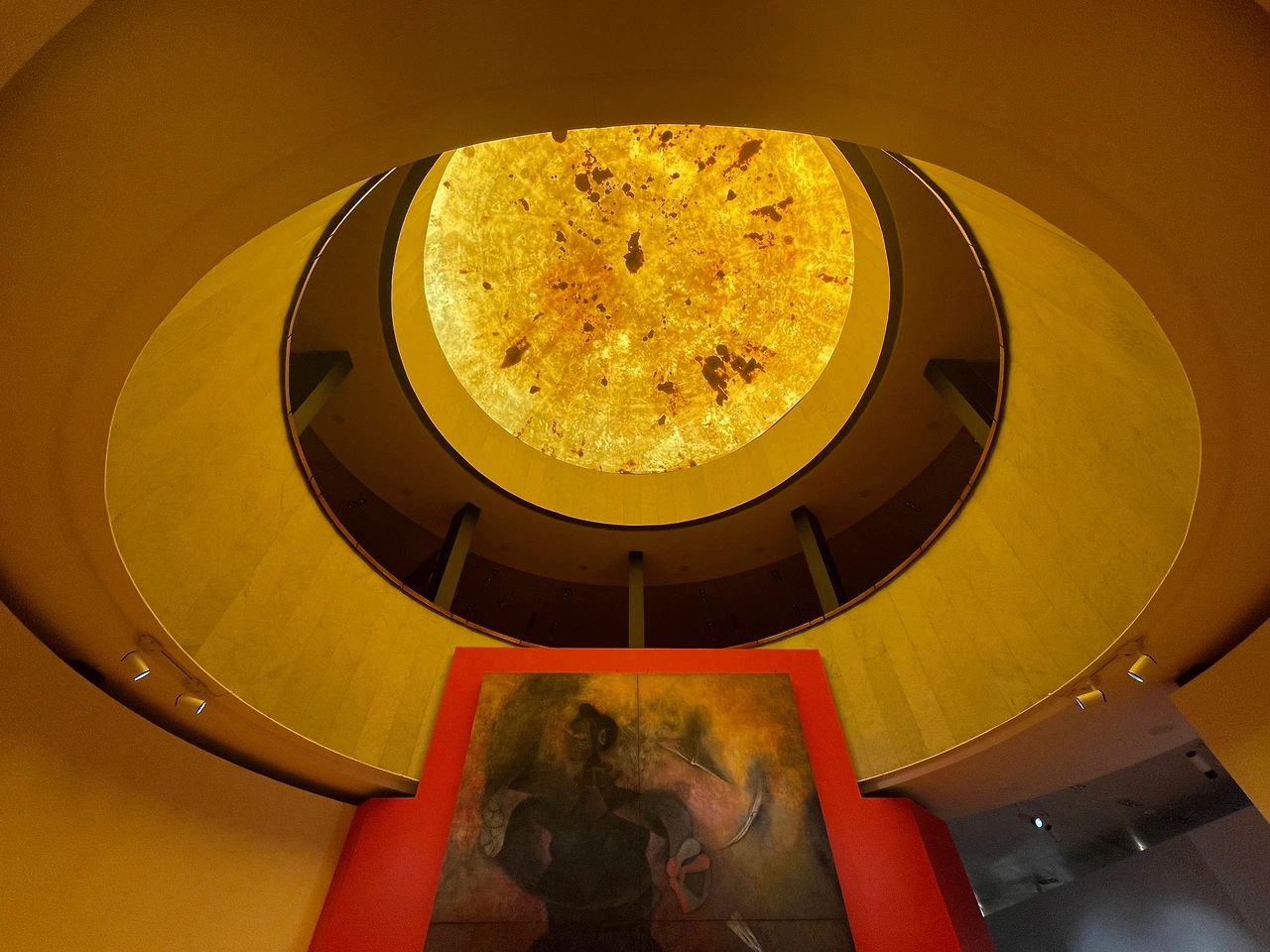 그렇게 중앙 홀을 자세히 관찰하고 나서 전시실로 진입하였다. 전시실에는 전시 칸막이로 인하여 일반적인 내부처럼 보는데, 조금 더 돌아보다가 정말 놀랐다. 전시실에도 중앙에 천창이 위치하고 있었고, 노란 페인트가 칠해진 천창으로 홀에서 보았던 노란빛이 들어오고 있었다. 그리고 천장 마감이 일반적인 가로형이 아니라 방사형으로 마감이 되며 원형 천창에 더욱 몰입이 되는 디테일이 있었다.