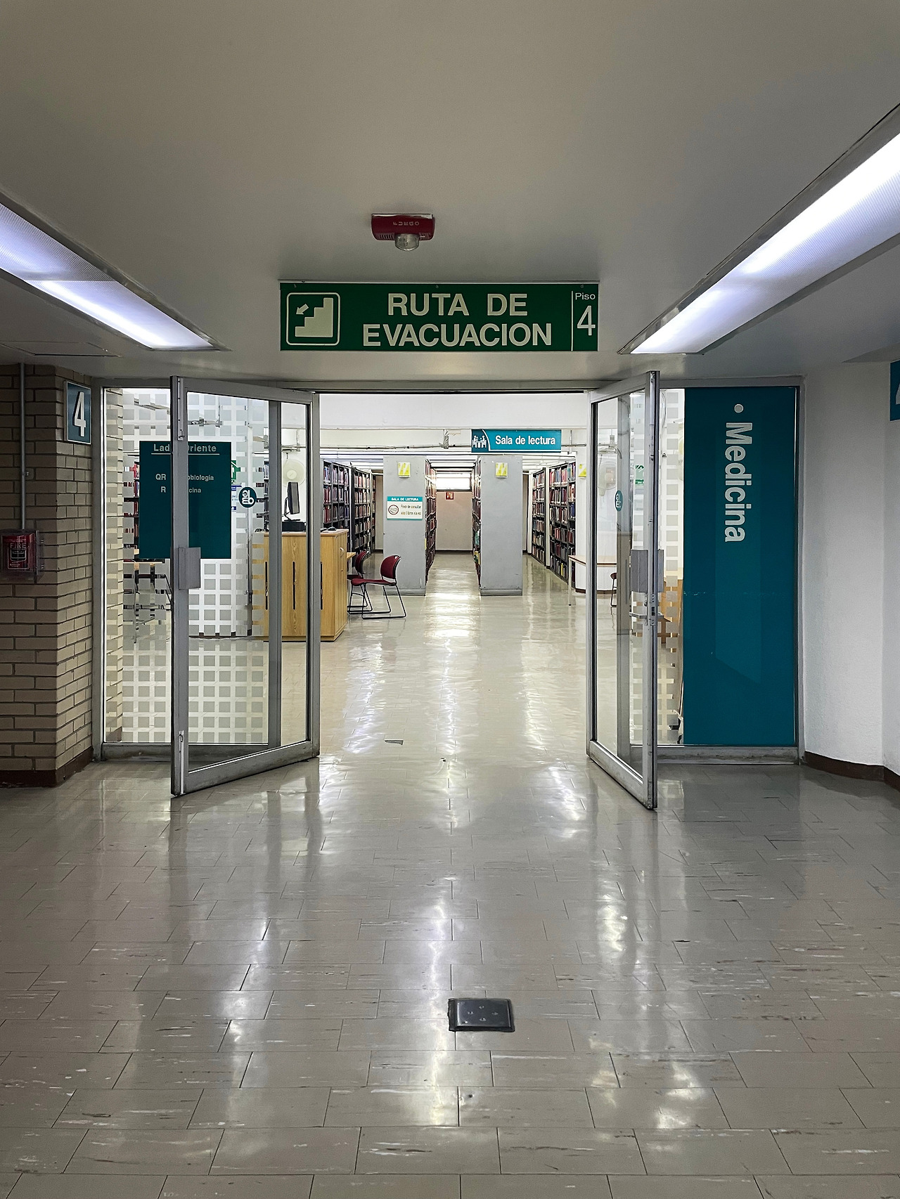 그렇게 1층 포디움에서 예상치 못한 공간에서 일정시간을 보내고 나서 가장 궁금했던 상층부로 이동하였다. 1층 홀을 지나 엘리베이터를 타고 최상층으로 올라갔지만, 주말이라 6층부터 개방을 한다고 되어있었다. 다시 6층으로 내려가서 홀에 도착하였다. 홀에서 본 도서관 자료실은 정말 오래된 도서관의 모습이었다. 무언가 새로운 공간이 나타날 것이라는 희망이 실망으로 바뀌며 자료실 안쪽으로 진입하였다.