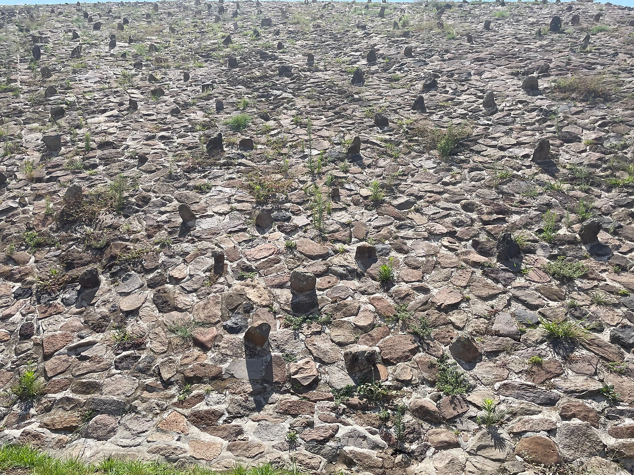 그리고 피라미드 비탈면에 중간중간 튀어나온 돌들이 인상적이었다. 비탈면을 따라 올라갈 수 있게 만든 손잡이나 발 받침대인가 생각을 해보았지만, 제단의 기능을 생각해 보았을 때 굳이 비탈면으로 올라가고 내려갈 필요는 없었을 것 같다. 이후 글을 쓰면서 ChatGPT에 물어본 결과 이 돌들은 압력을 견디게 해주는 구조적 역할이거나, 외관을 아름답게 하기 위한 디자인이라는 유력한 설을 이야기해 주었다. 여전히 그 기능은 알 수 없지만 비탈면 전체에 규칙적으로 튀어나온 돌과 그림자에 이유 모를 관심이 향했다.