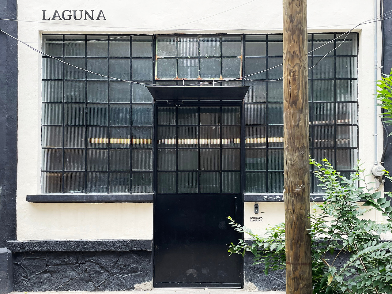 여러 소규모 공장을 지나고, 주변건물과 다르지 않은 건물 정문에 도착하였다. 구글 지도가 알려주었기에 찾을 수 있었지, 외관상 다른 건물과 구별할 수가 없었다. (다만 두 번째 와보았기에 멀리서 살짝 보이는 계단탑을 인식할 수 있었다.) 정문은 공장 단지에 맞게 기존 재료와 분위기를 최대한 유지하였고, 작게 표시된 마크를 통해 이곳이 라구나임을 알 수 있었다.