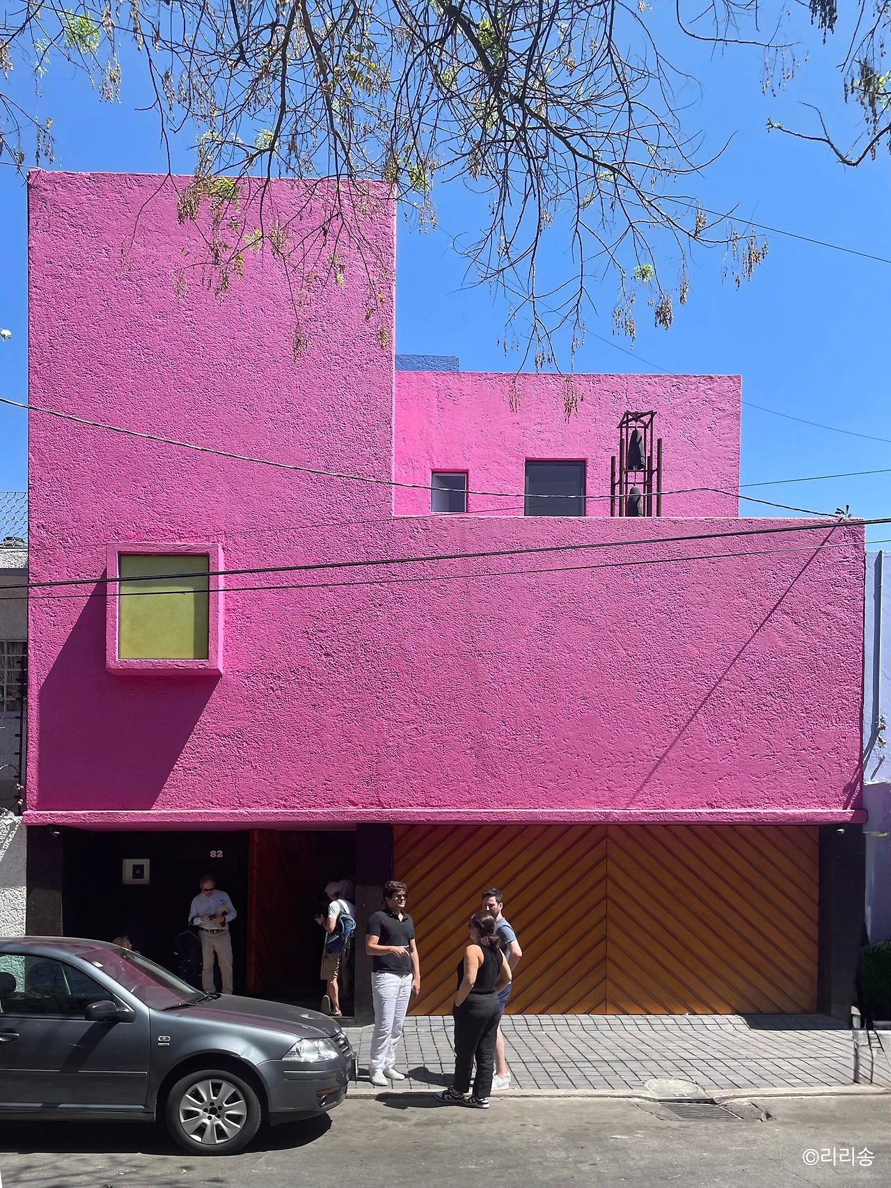 길라르디 주택이 있는 도로로 접어드니 핑크색으로 존재감을 나타내고 있는 건물 하나가 보였다. 내부 공간은 많이 보았지만 외부 모습은 본 적이 없었는데, 단번에 바라간이 설계한 주택이라는 것을 알 수 있었다. 바라간에 대해 짧게 이야기해 보자면 그는 멕시코 과달라하라 출신이고 그곳은 다양한 색채를 가진 건물이 많이 있는 도시이다. 하지만 멕시코시티는 수도답게(?) 무채색의 건물이 많으며, 색채가 강한 주택은 뜨문뜨문 보일 뿐이다. 그래서 길라르디 주택이 두드러져 보였던 것 같다. 이후 입장시간이 될 때까지 주택 앞 도로를 걸으며 다양한 각도에서 외관을 살펴보았다.