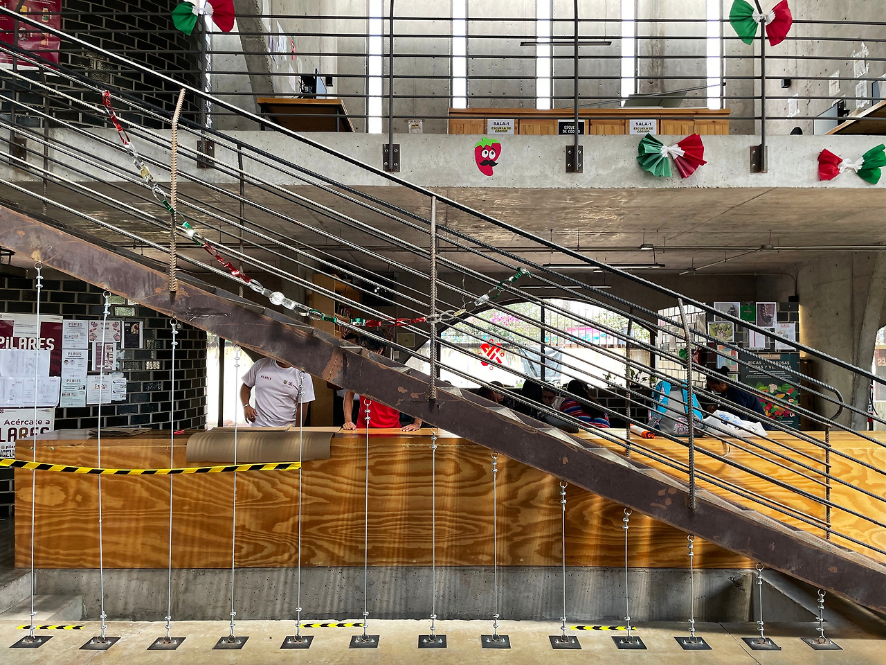 그리고 다음으로 주목한 것은 계단이었다. 이는 설계를 담당한 직원의 이야기 때문이었는데, 그는 건물에서 계단을 관철하는 것이 가장 어려운 일이었다고 말해주었다. 높이 3m가 넘는 계단에 참을 만들지 않기 위하여 허가과정에서 많은 시간을 소비한 것이다. 우리나라는 높이 3m 이상인 계단에 1.2m 폭의 참을 필수적으로 설치해야 하고, 멕시코는 2.7m마다 참을 만들어야 하는 규정이 있다. 하지만 건축가는 2층짜리 건물에 참이 있는 계단을 만들고 싶지 않았고, 이를 관철하기 위해 꽤 힘든 허가과정을 보냈다고 한다. 디자인적인 관점에서 참이 없는 것이 큰 변화일까라는 의구심은 들었지만, 작은 요소의 디자인까지 신경 쓰고 있다는 점은 무척 인상 깊었다. 그리고 건축가의 의도에 따라 법규가 유동적으로 적용될 수 있다는 점도 꽤나 인상 깊은 부분이었다.