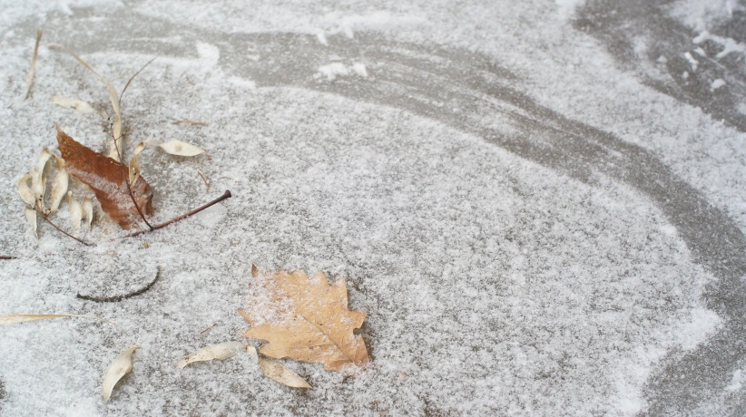 눈송이는 그녀의 코트 위에 고요히 내려앉았다가