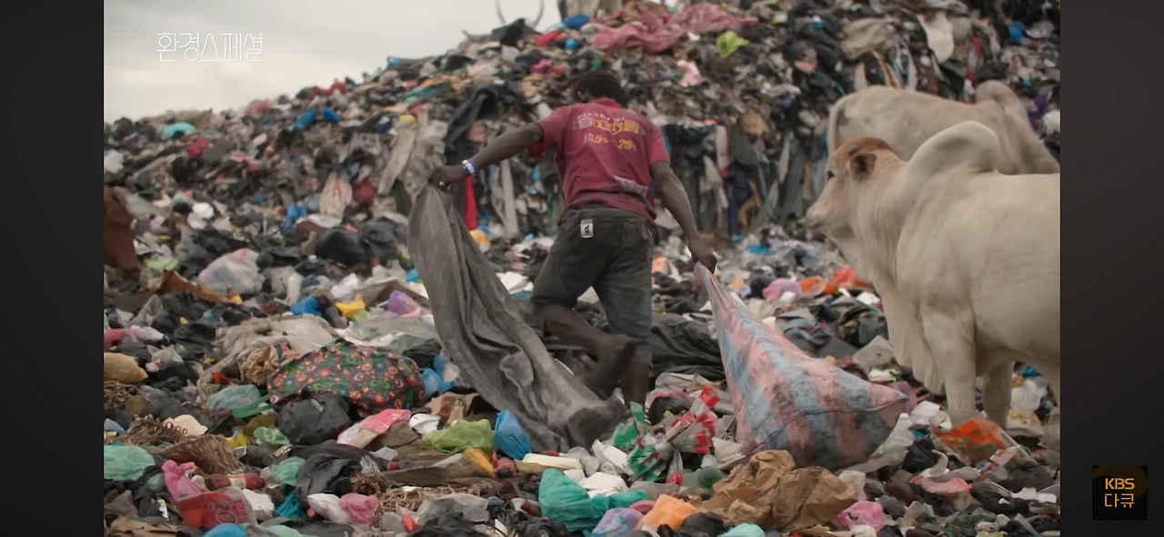 2022년 방송대상을 수상한 환경스페셜 <옷을 위한 지구는 없다>는 지구가 헌 옷으로 겪고 있는 고충을 여실히 드러낸다. 한번 입고 마음에 들지 않아 버려 버린 우리의 옷들은 지구 반대편 남미나 아프리카로 보내진다. 몇몇은 그곳 시장에서 내가 구제 옷을 샀던 것처럼 현지인들에 의해 소비되지만 대부분은 강이나, 바다, 고원 등에 버려진다. 옷으로 만들어진 무시무시한 산. 소가 그 산을 타며 섬유를 먹고 있는 장면이나, 옷이 가득 쌓인 해변의 탁한 물 색깔을 보면 입이 뜨악하고 벌어진다. 어디에선가 벌어지고 있는 일이란 걸 알았는데, 영상을 통해 무시무시한 사실을 마주하니 지구에게 정말 미안해졌다. 결국 돌고 돌아 우리에게 올 그 재앙을 눈에 보이지 않는다고 무시하고 있었다는 생각이 든다.