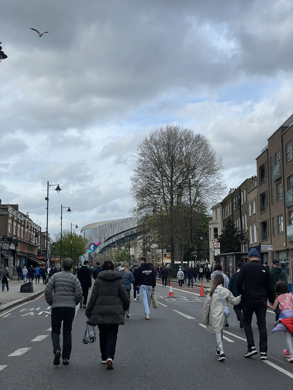 남편에게 영국에 대해서는 크게 궁금한 게 없다고 이야기했지만 막상 공항에 내리니 얼굴에 저절로 미소가 번졌다. 드라마에서 듣던 영국 엑센트가 들려오기 시작한 것이다. 영어로 적힌 익숙한 표지판들을 따라 지하철을 타고 호텔로 향했다. 미국에 있으면 좀처럼 탈 일 없는 지하철을 타니 여행지에 온 것이 실감 났다. 긴 비행동안 울렁거렸던 속을 쌀국수로 달래주고 영국에 온 목적을 달성하기 위해 토트넘 경기장으로 향했다. 경기장은 시의 외곽에 있었고, 지하철에서 내린 후 30분 정도를 걸어야 했다. 경기를 보러 가는 사람들이 모두 한 곳을 향해 움직이며 인간 파도를 형성했다. 오랜만에 많은 사람들 속에 둘러 쌓여있으니 흥이 올라오기 시작했다.
