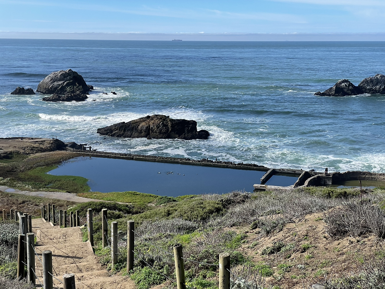 샌프란시스코 만 끝에는 랜드 엔즈 룩아웃(Land ends lookout), 땅이 끝나는 곳이란 뜻의 전망대가 있다. 만 끝에서 태평양과 금문교를 조망할 수 있고, 야생화가 펼쳐져 있는 해안가 옆, 하이킹 코스로 잘 알려진 곳이다. 샌프란시스코 만 지역, 일명 베이 에리어(Bay area)의 다양한 하이킹 코스 중, 이곳에 유독 많은 방문자가 찾는 이유는 바로 수트로 베쓰(Sutro bath), 거대한 수영장의 폐허가 아직 남아 있기 때문이다.